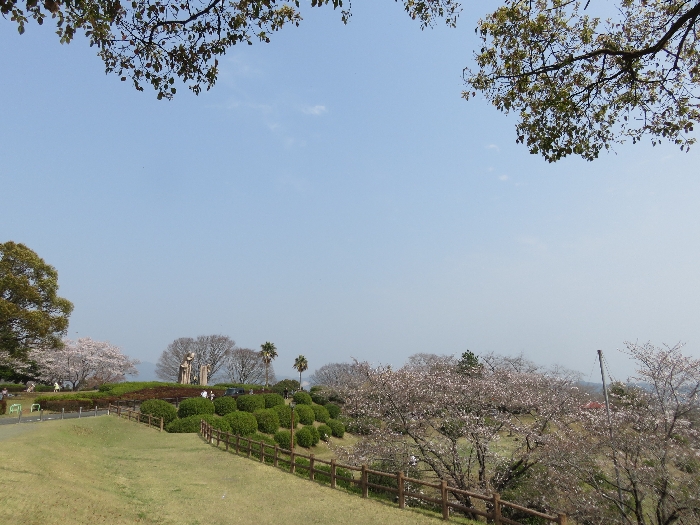 ポカポカ気持ちのいい天気だった休日、熊本県でお花見を楽しめる! 気持ち高まりウキウキ車を走らせて山鹿市(やまがし)鹿本町(かもとまち)にある「一本松公園」に出かけました。まだ、この日は満開ではなかったけど天気予報を見るにこの休日しかお花見できらせんな~とお弁当を持って出かけましたが休日ということもあって駐車場が満車御礼!! 駐車場から歩いていると「一本松公園」のシンボルが見えてきました。