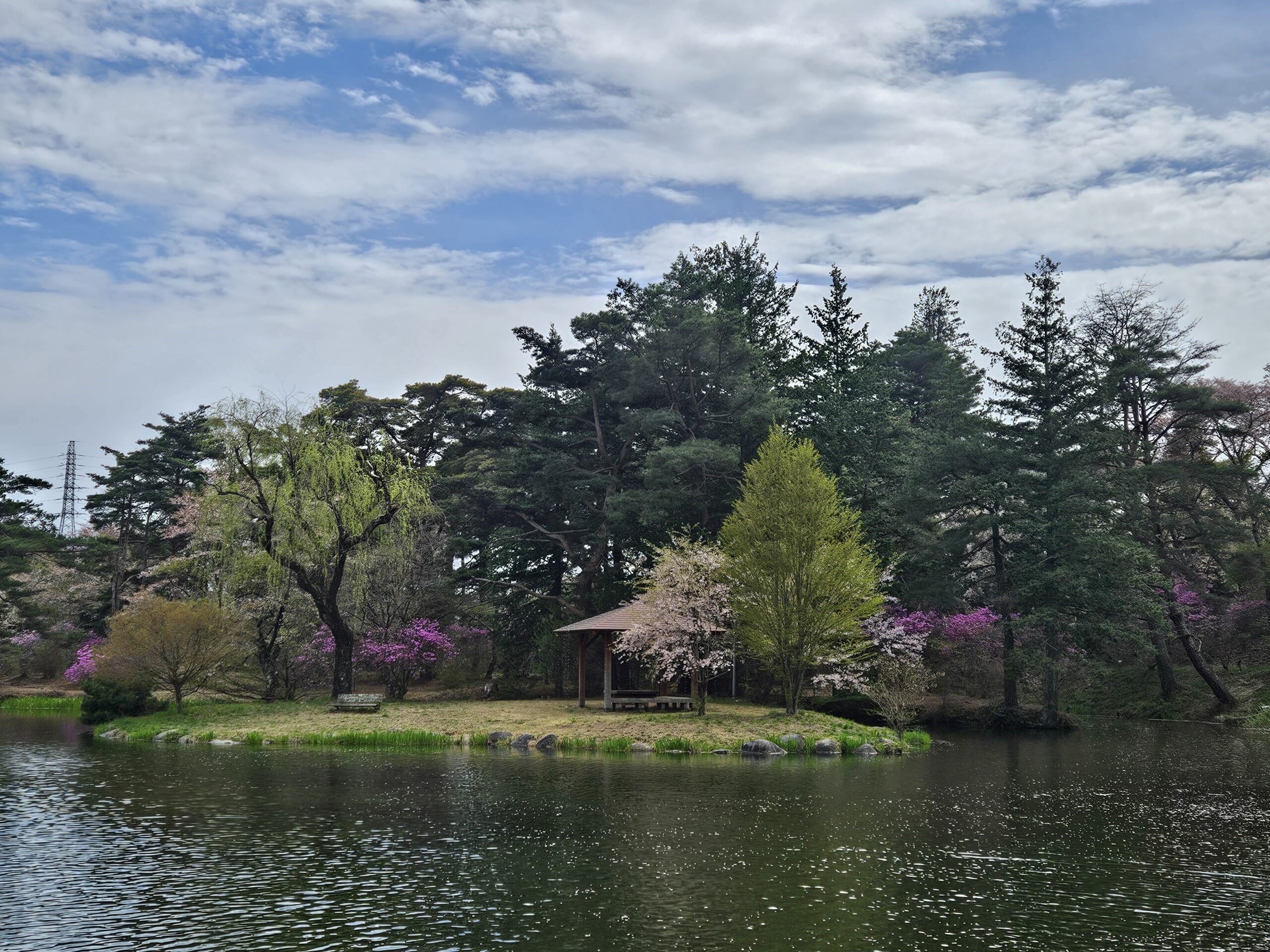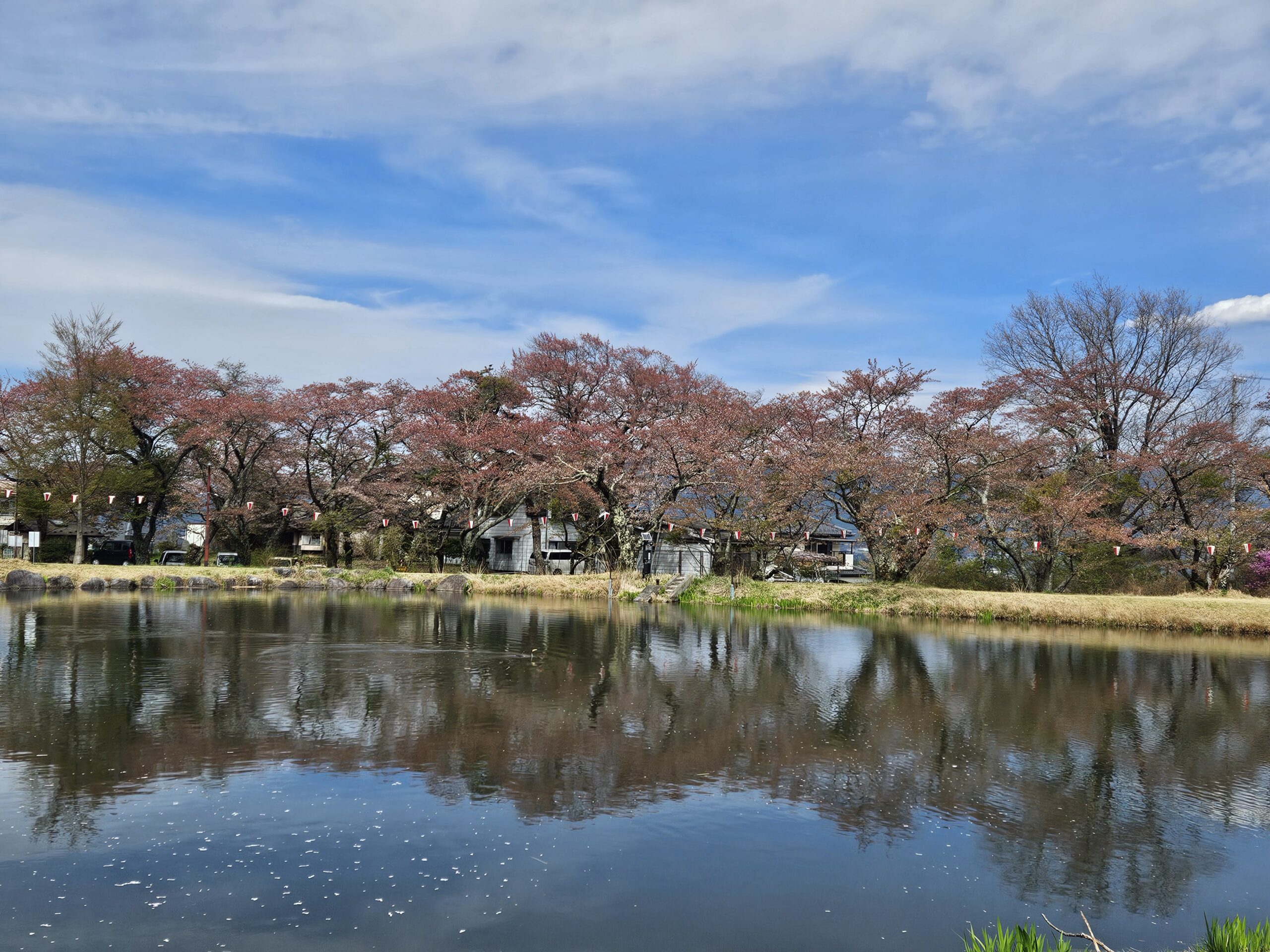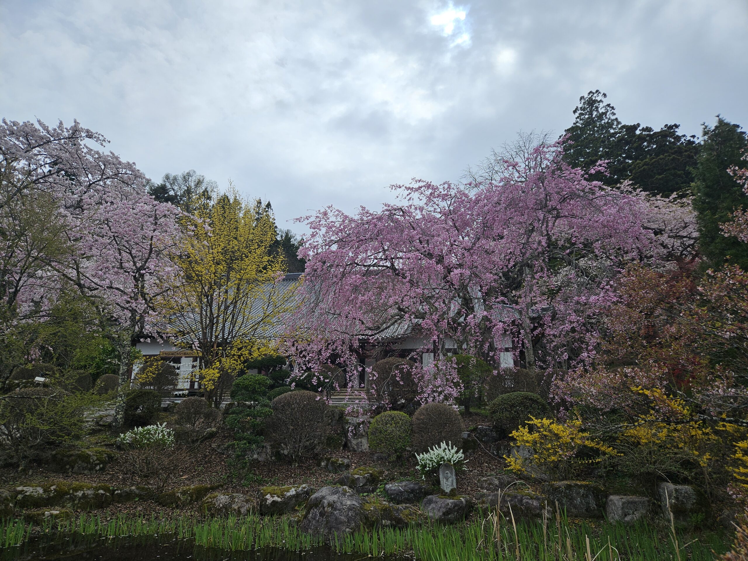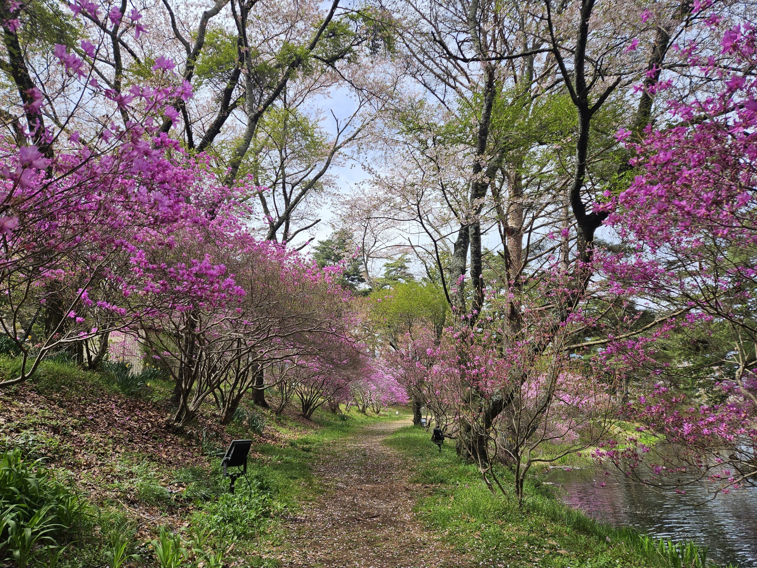 光善寺よりも標高が低いため開花も早く、桜は終わりかけでしたが、ミツバツツジのトンネルが見事でした。まだ蕾のツツジもあり、これから紫色のショウブの花や柳の新芽が色づいてくるとまた違った景色が堪能できます。
