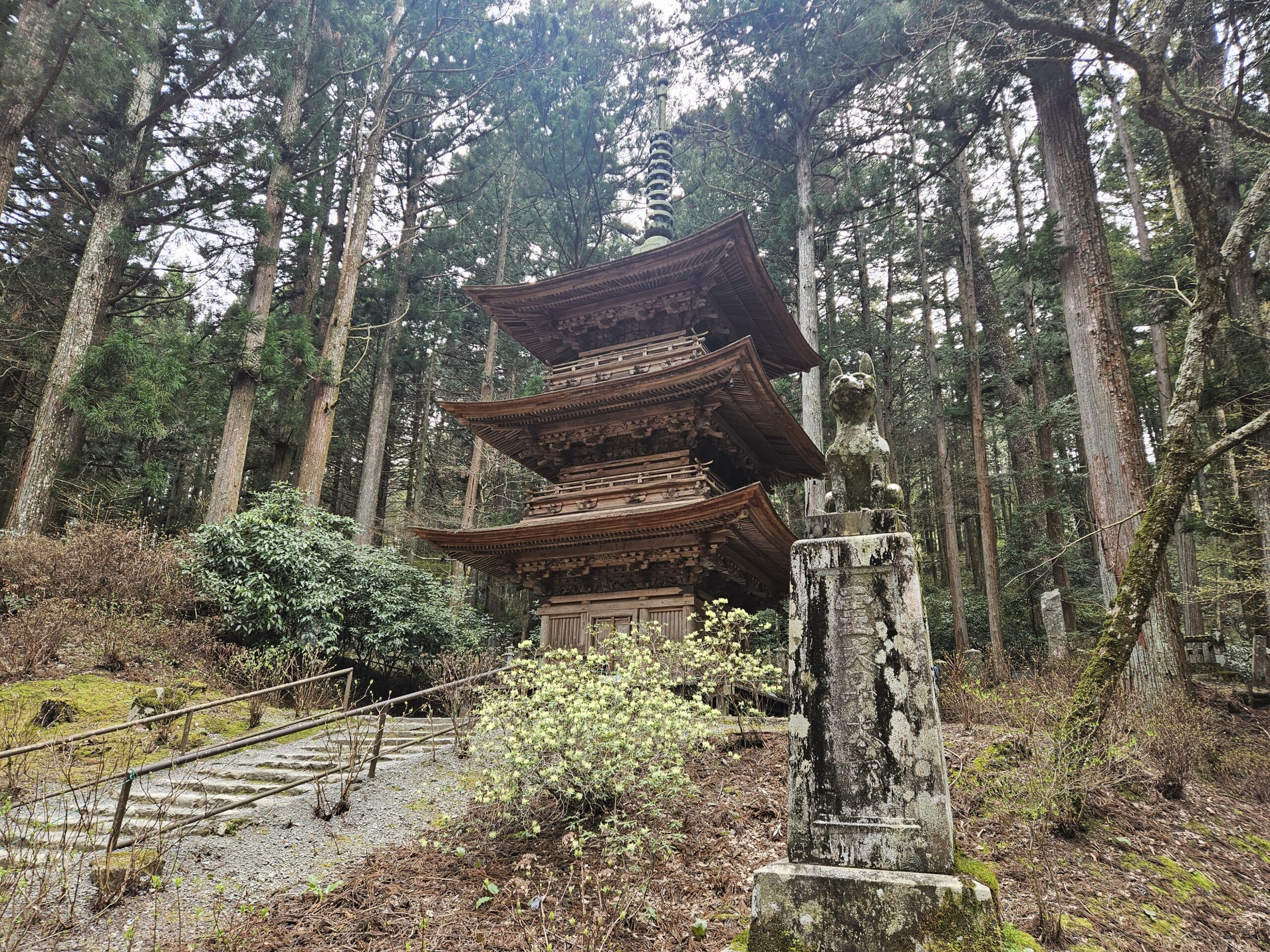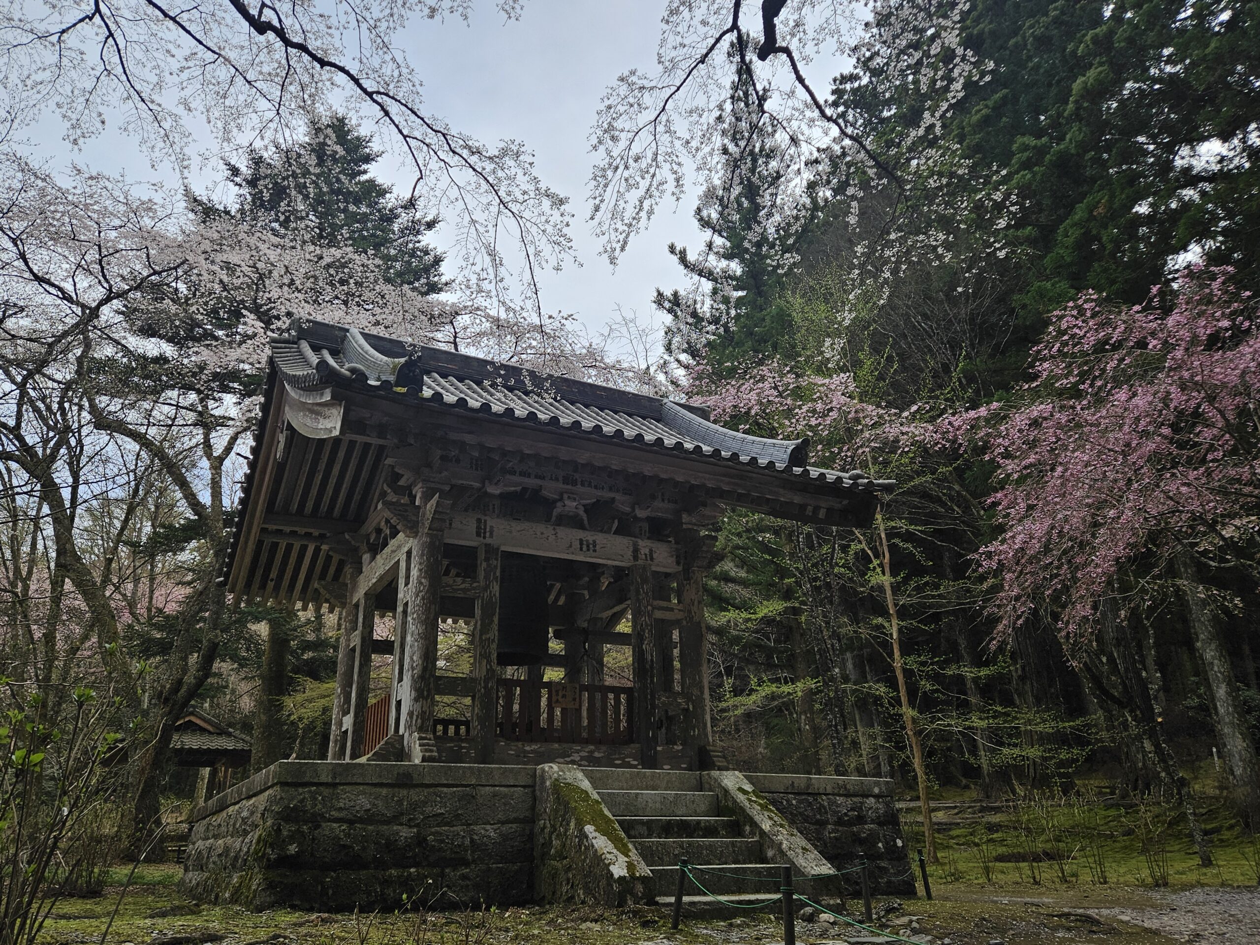 例年4月中旬に桜の見頃を迎える光前寺ですが、今年は1週間ほど早くなっています。ここ数年の傾向として、桜が咲き始めてから雨になる日が多く、1週間ほどであっという間に花が散ってしまう印象。気温差も大きく、3月下旬には早朝0度前後だった気温もお花見に訪れた日の気温は朝11度、日中25度でした。夏でも1日の寒暖差が10度前後ある地域のため、お出かけの際は体温調整しやすい服装で来ると安心です。