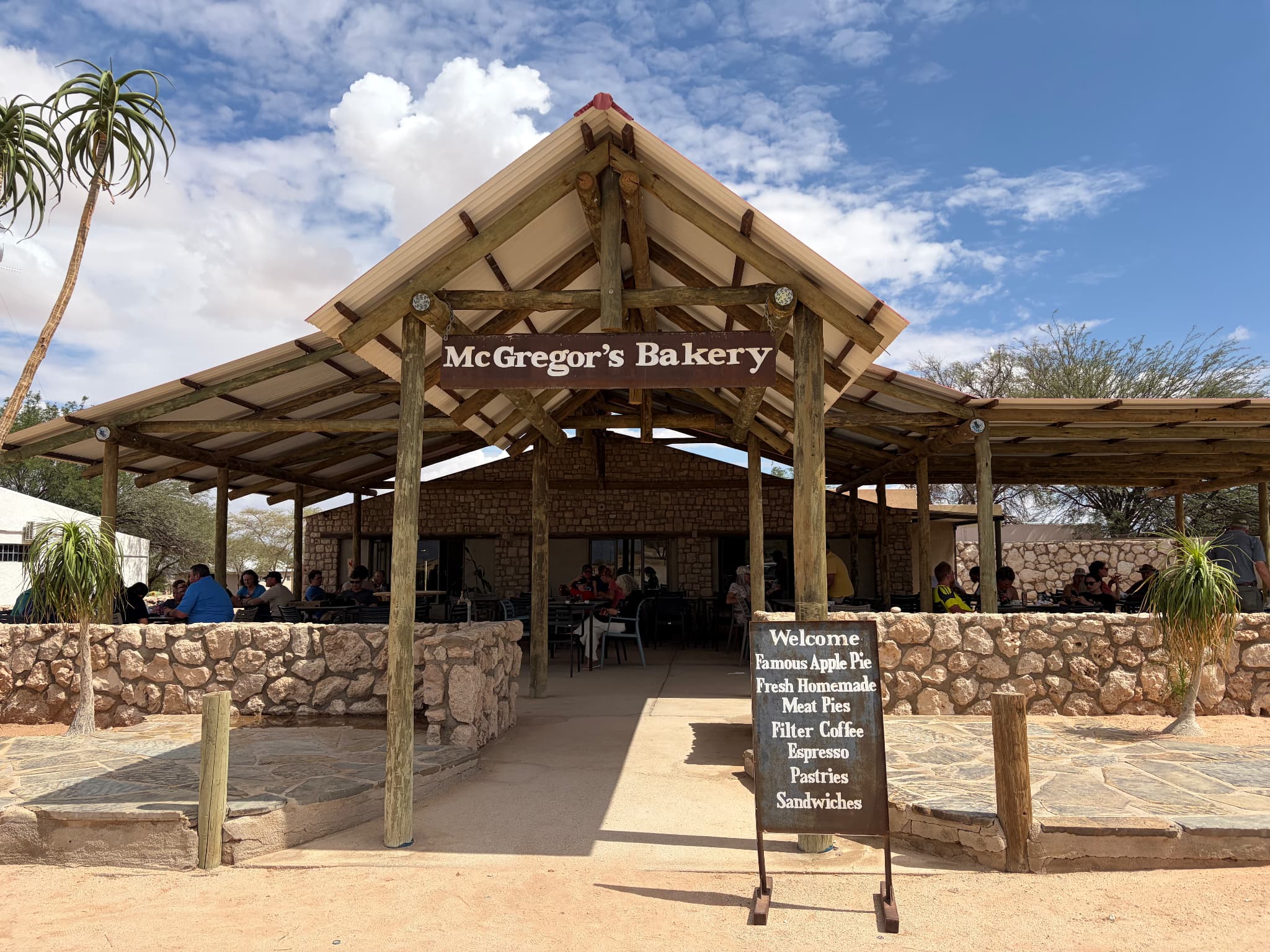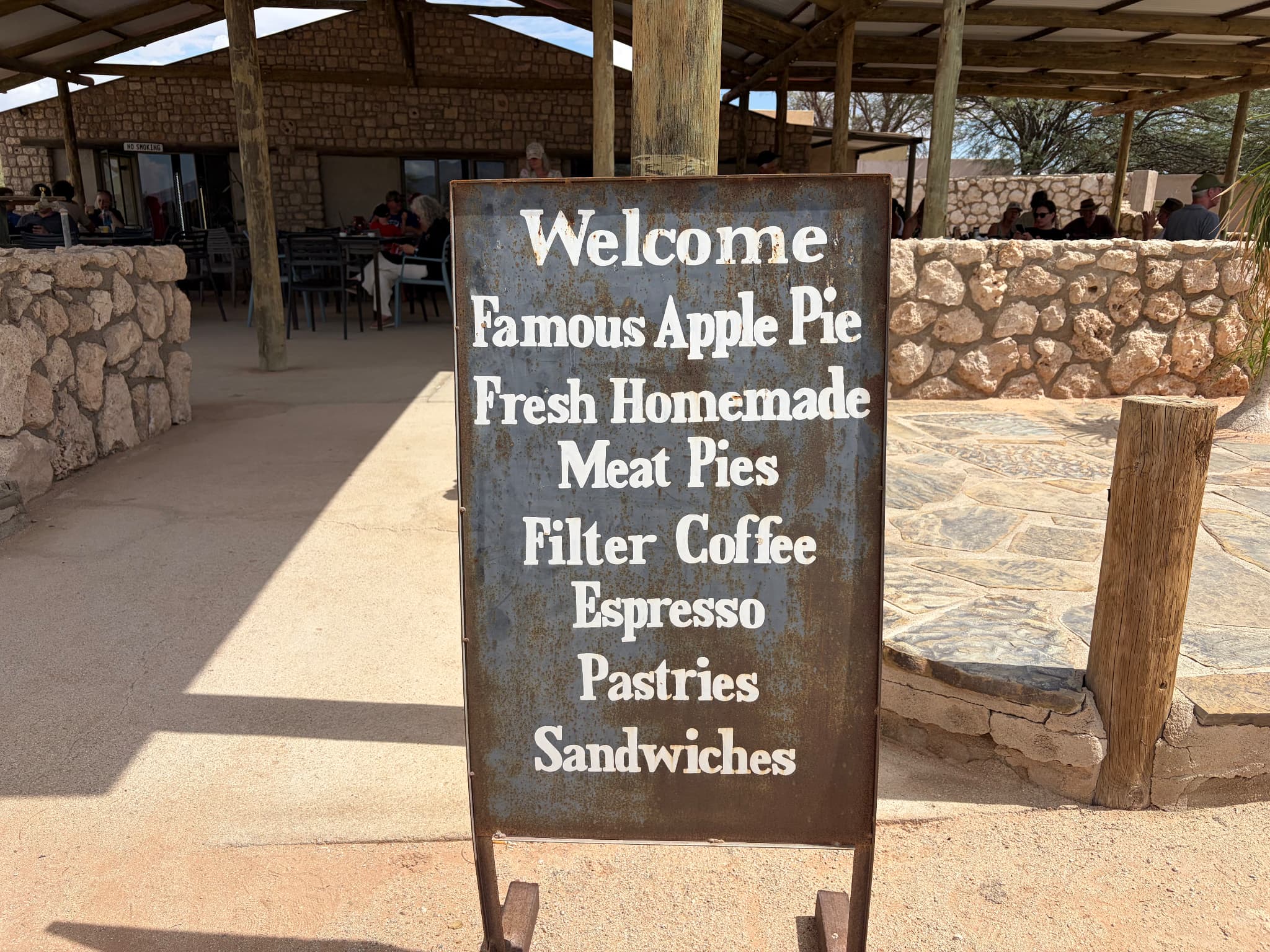 ナミビアで超定番の観光地といえばナミブ砂漠。そこに辿り着くには、空港や主要都市から車で4〜6時間かかるロングドライブを乗り越えなければいけません。荒野の悪路を進むこと数時間、突如オアシスのようにポツンと現れるガソリンスタンド。実はそこに併設しているベーカリーに世界中で評判の“伝説のアップルパイ”があります。