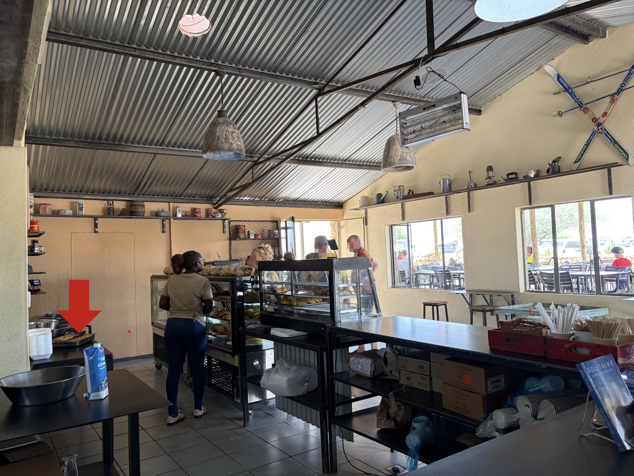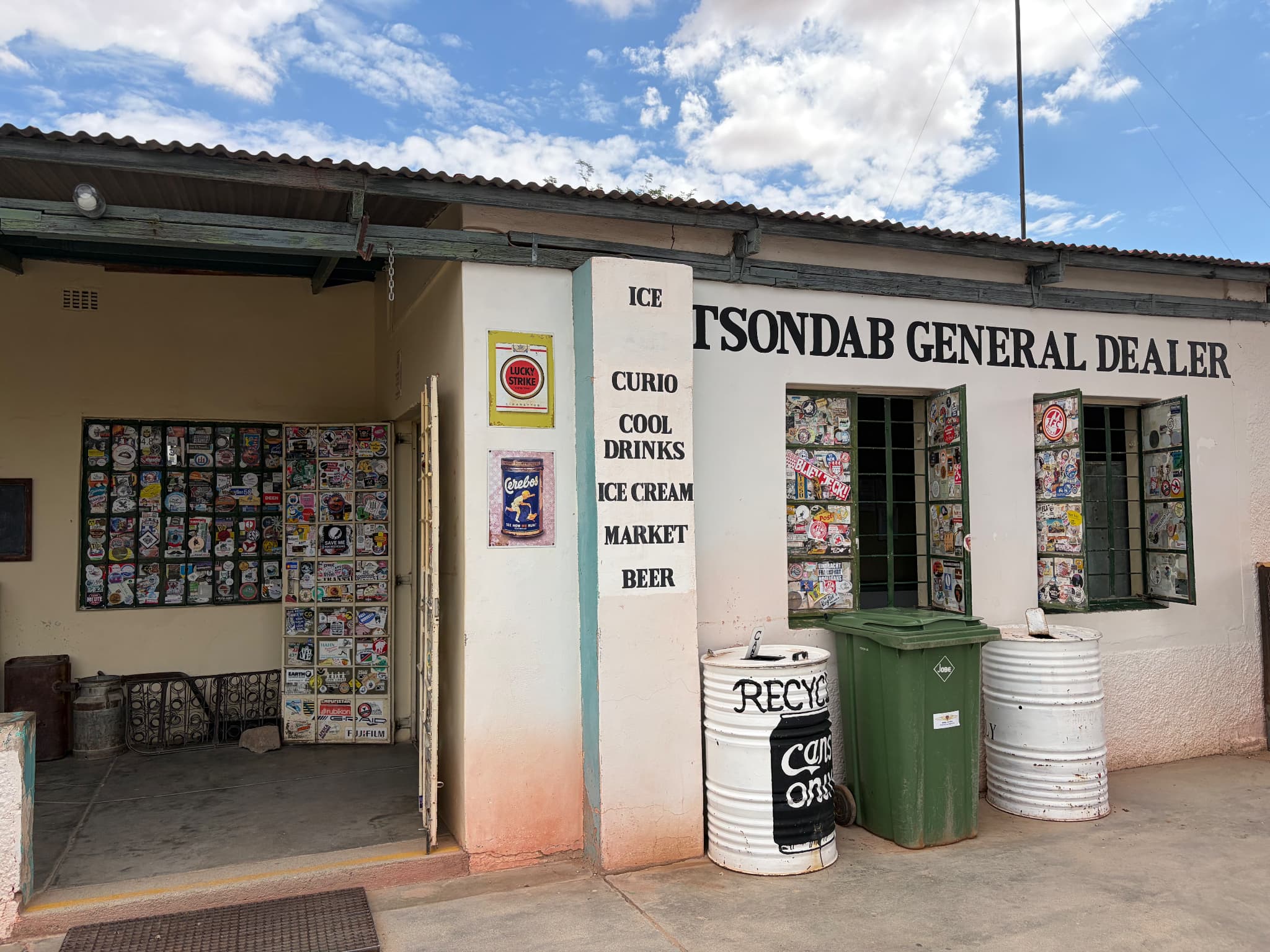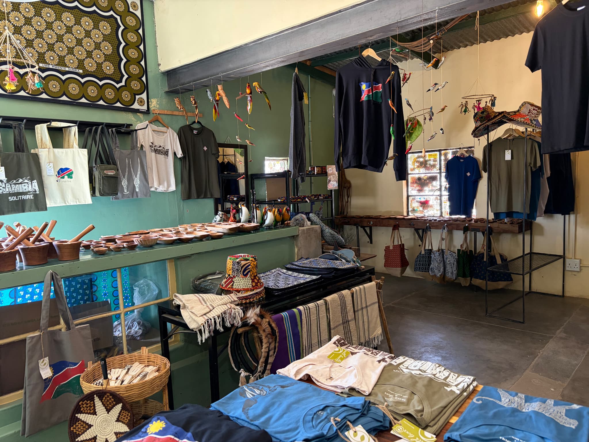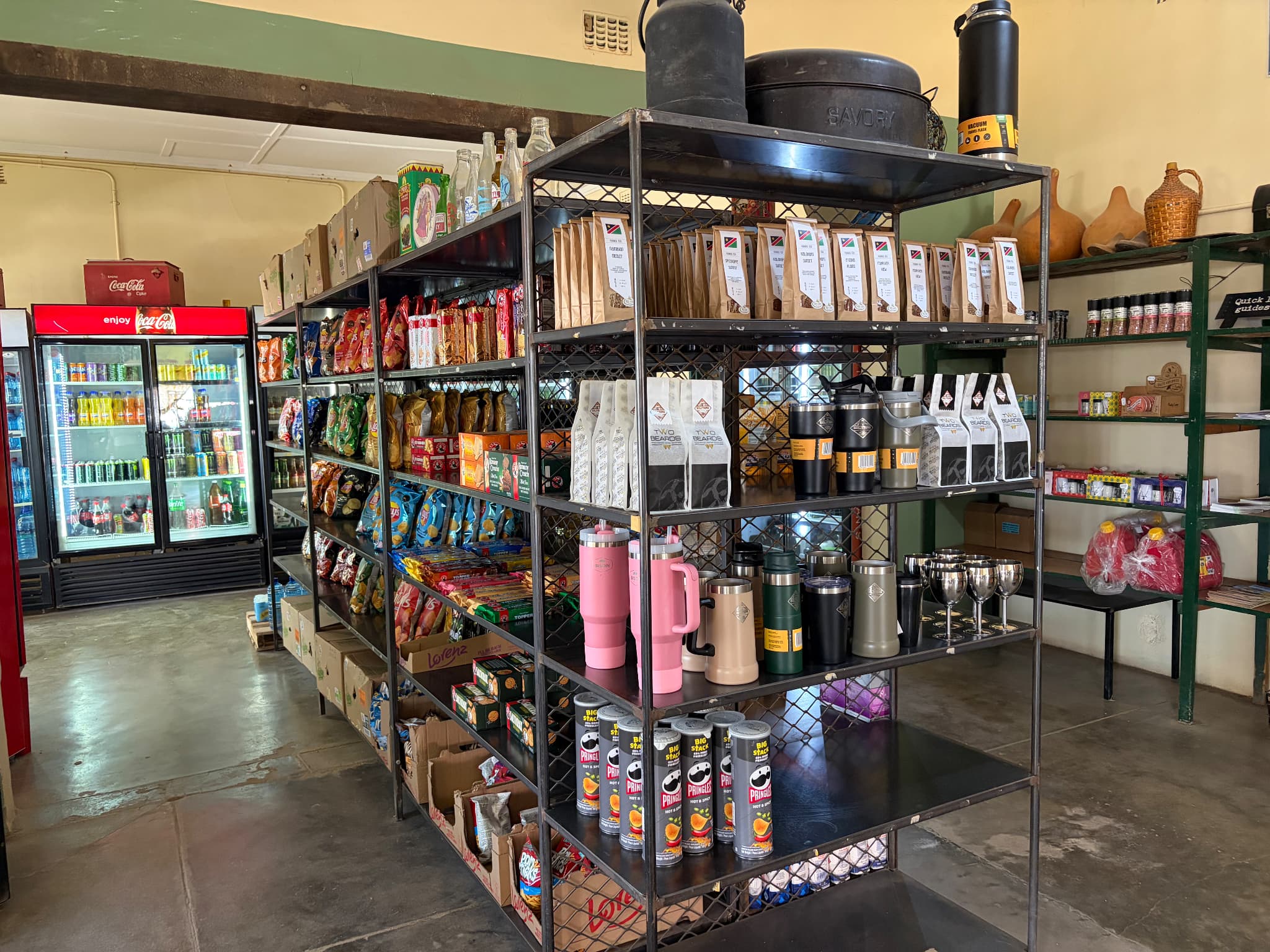ベーカリーのすぐ隣にあるお土産やさんには、ソリティアオリジナルグッズをはじめとするナミビアならではのお土産が揃っています。さらにポテチやドリンクなど、ドライブのお供にしたいスナックもここで手に入ります。