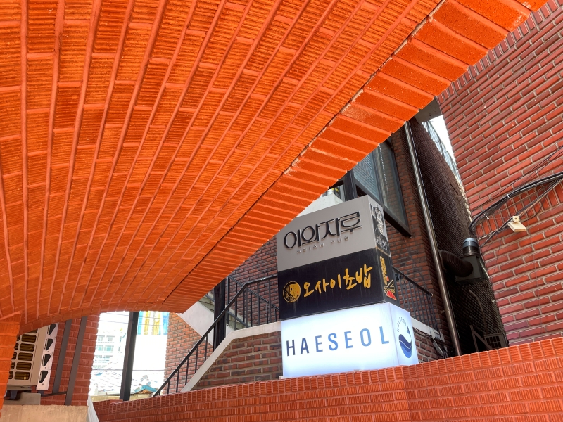 こちらは筆者が地図で見つけたカンジャンケジャンなどの定食を扱うお店【ヘソル聖水(해설 성수)】です。場所は2号線聖水駅4番出口とトゥクソム駅5番出口のちょうど間ぐらいで、徒歩5分のところにあります。写真の看板を見つけたら、中に入って地下1階がお店です。