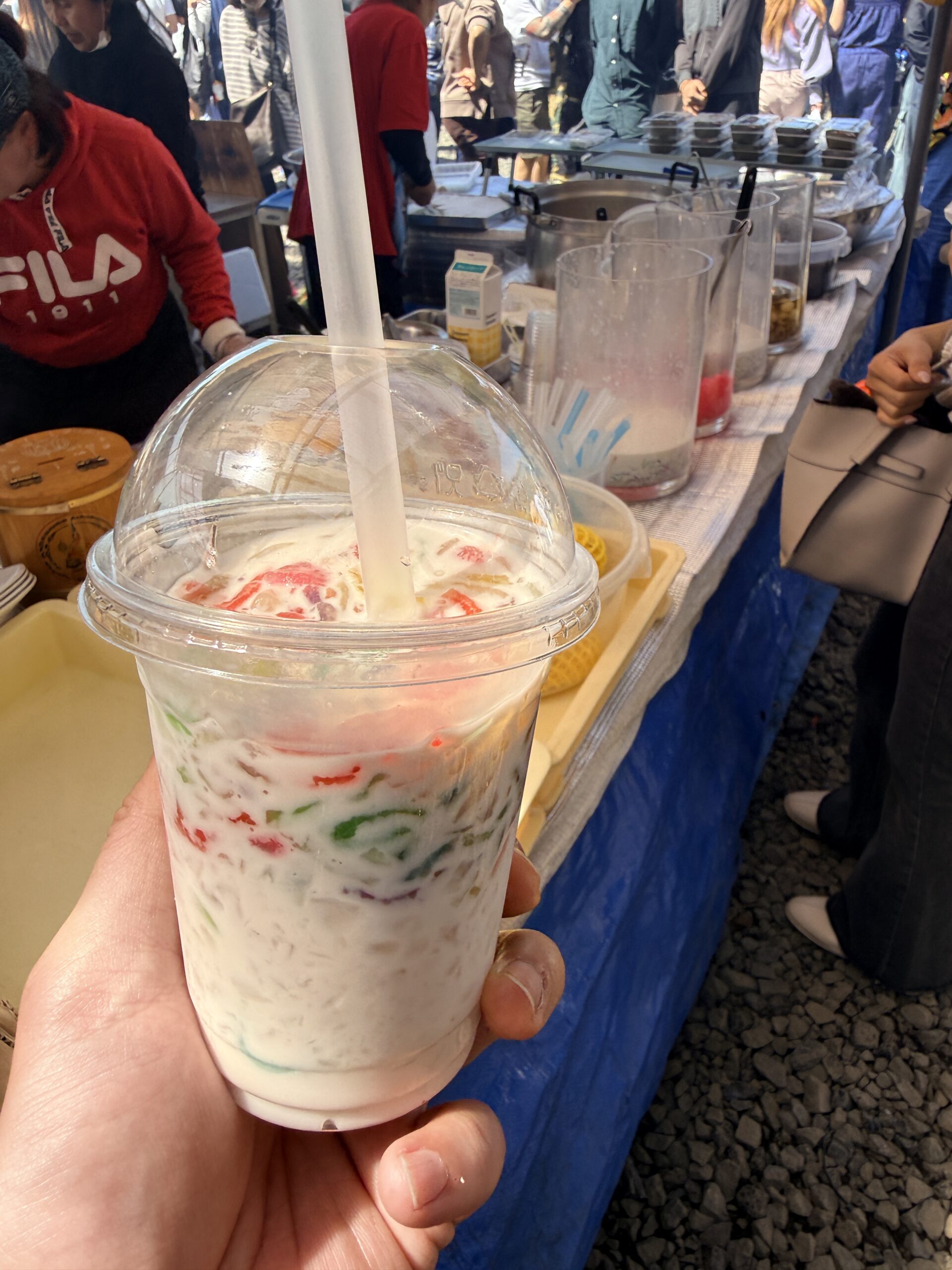 ずらりと並んだ屋台の食べ物や飲み物は、なんと「無料提供」されているのです。これはタイの仏教における「タンブン(徳を積む)」という考え方に基づいています。他者に食事を振る舞ったり、お寺に寄付をしたりすることで自分の徳を積み、来世での幸せを願うという美しい風習です。