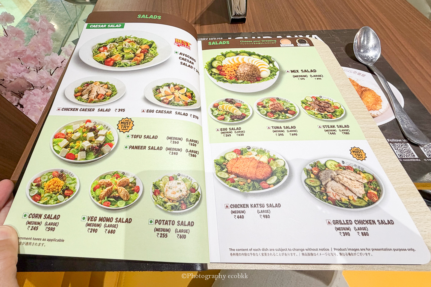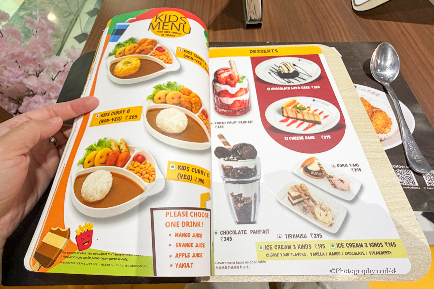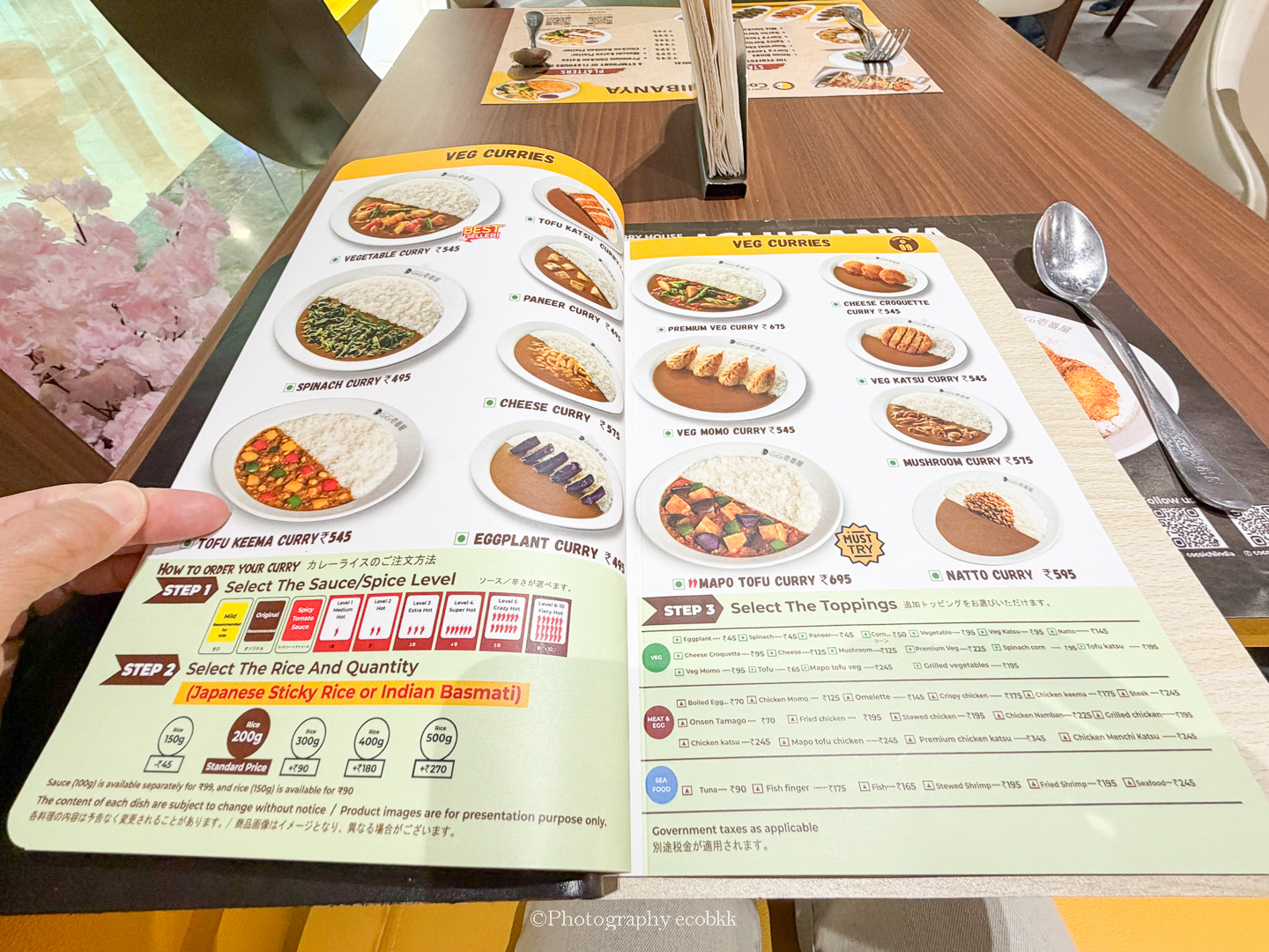 メニューも大変豊富で、とても驚きました!トッピングは40種類前後あるようで、カレーはお米といただくだけではなく、うどんやラーメンとの組み合わせたメニューもあります。サイドディッシュやデザート、キッズメニューの他、ベジタリアンメニューも充実しているので、ベジタリアンの多いインド人や西欧人をも意識していることがうかがえます。そして、辛さや量等も選ぶことができ、なんて気の利くカレー屋さんなのだと嬉しくなりました。日本発のカレーレストランということで、日本人であることが誇らしくなってしまったほどです。