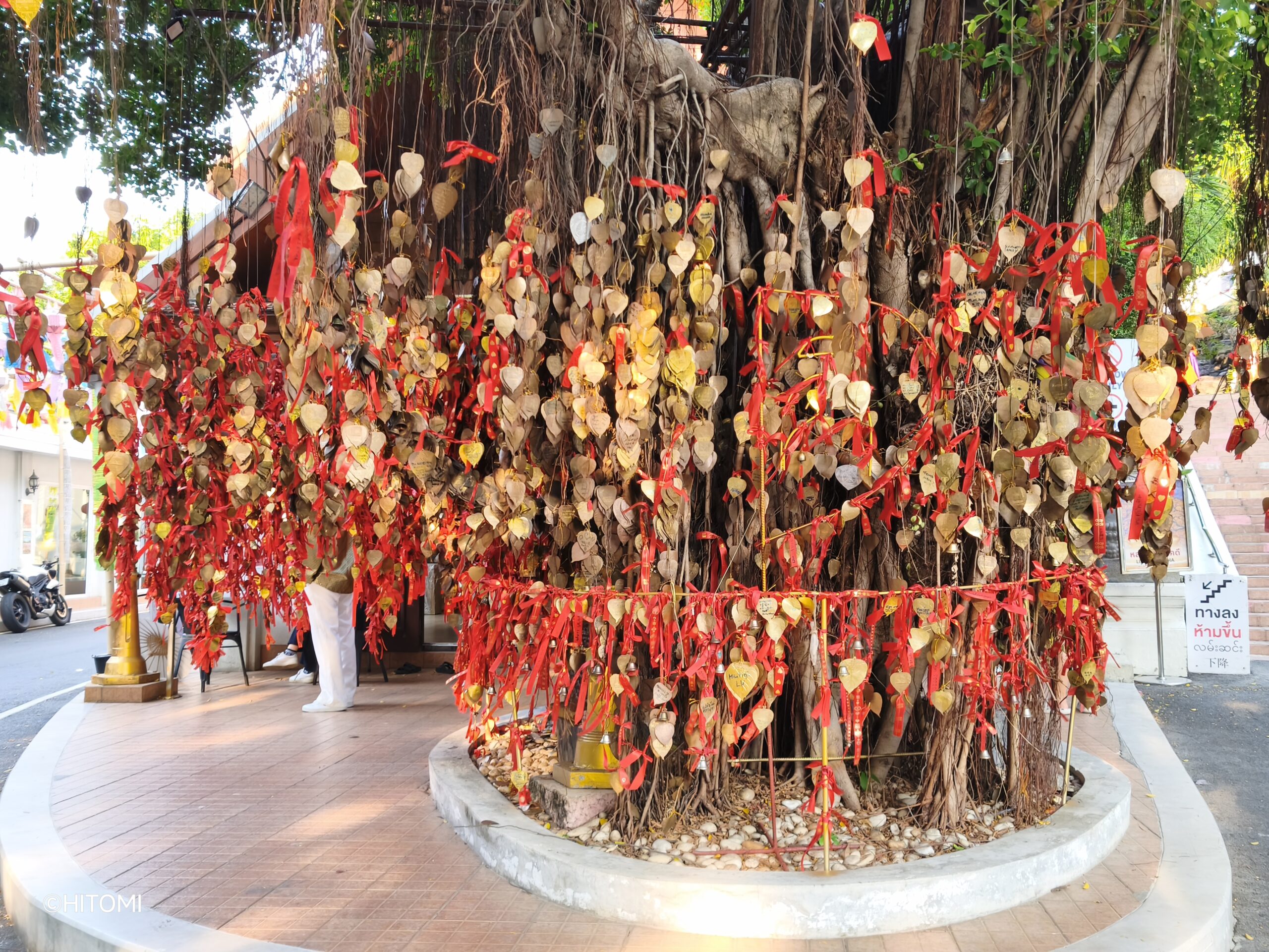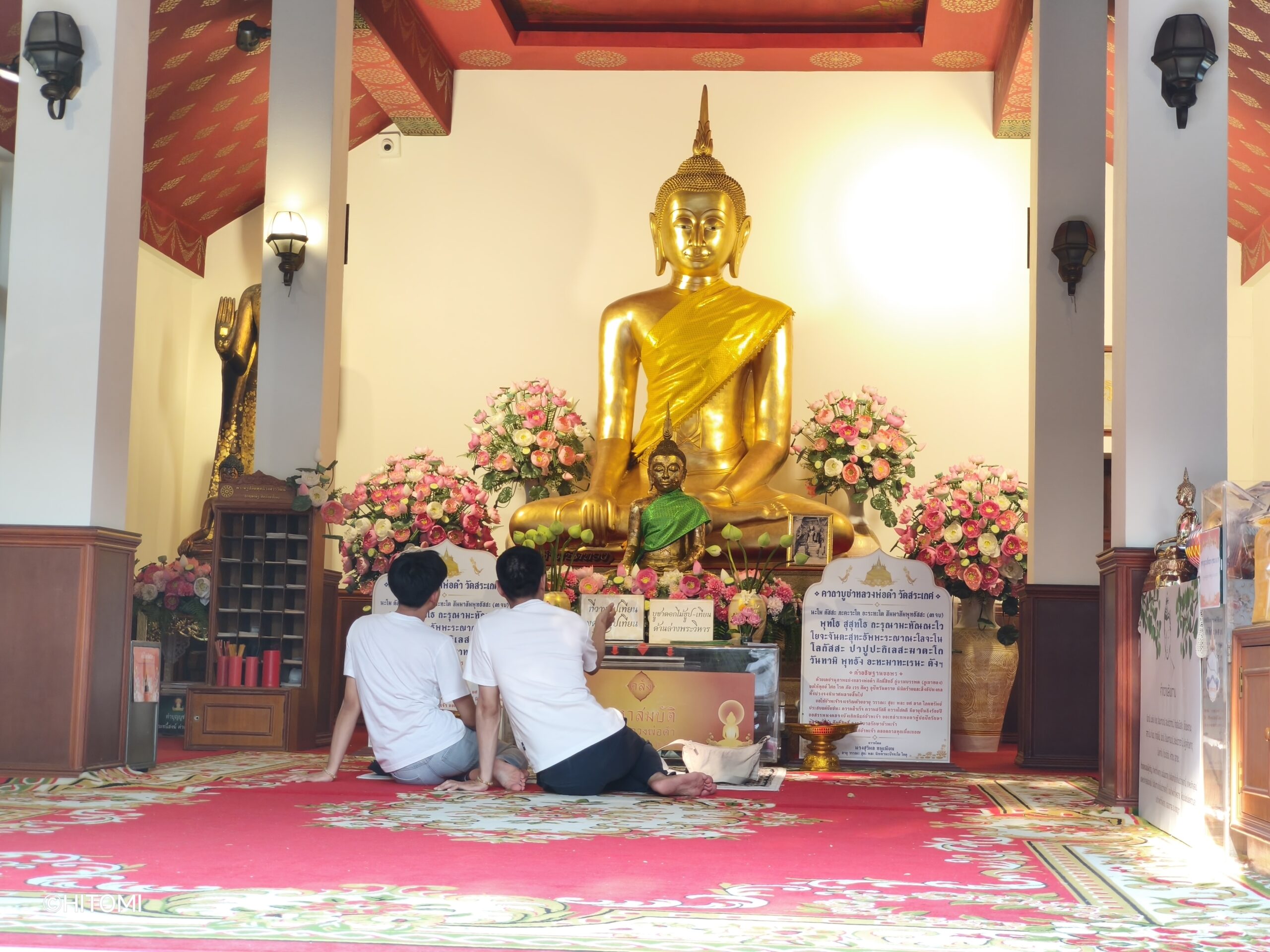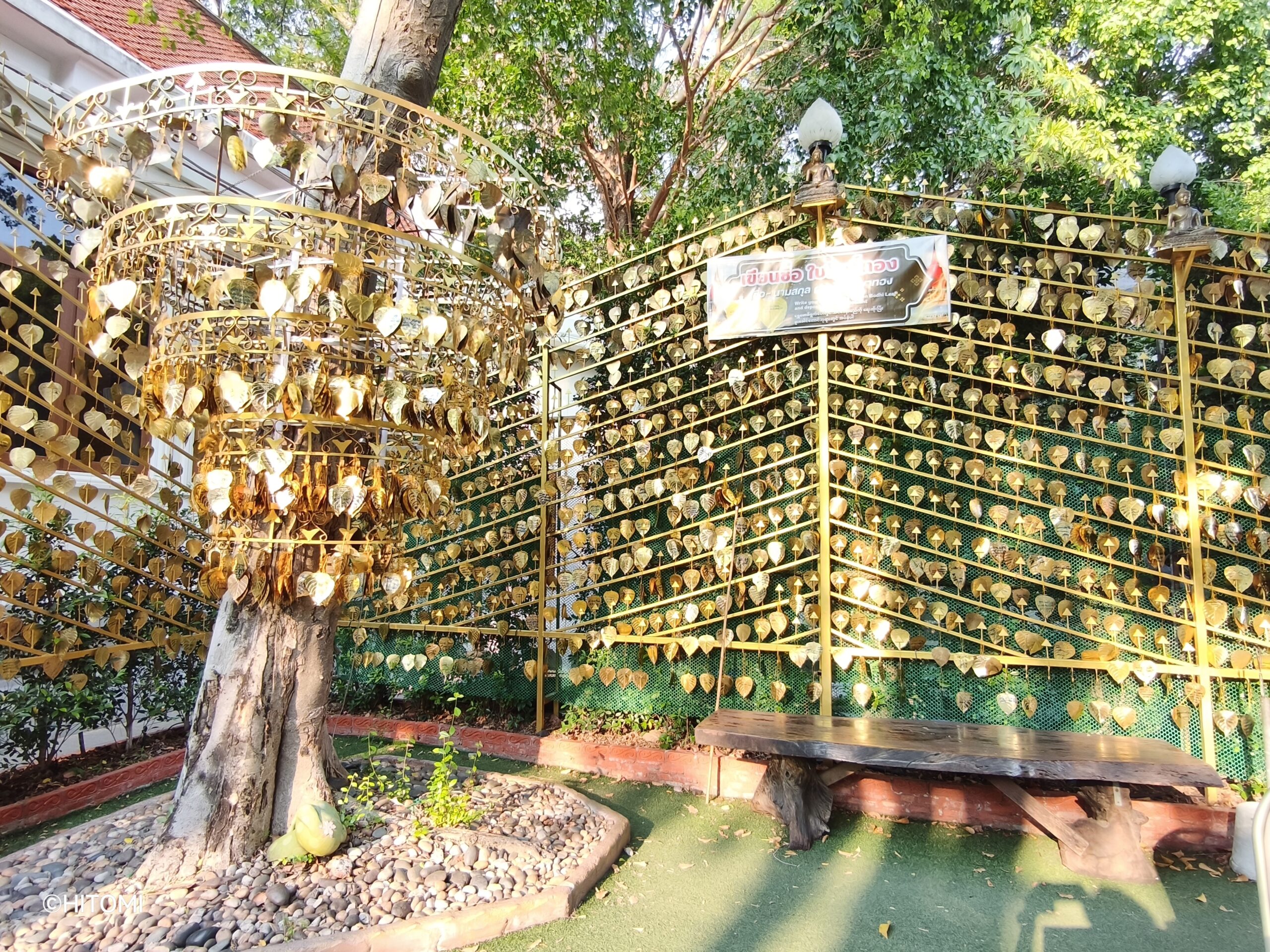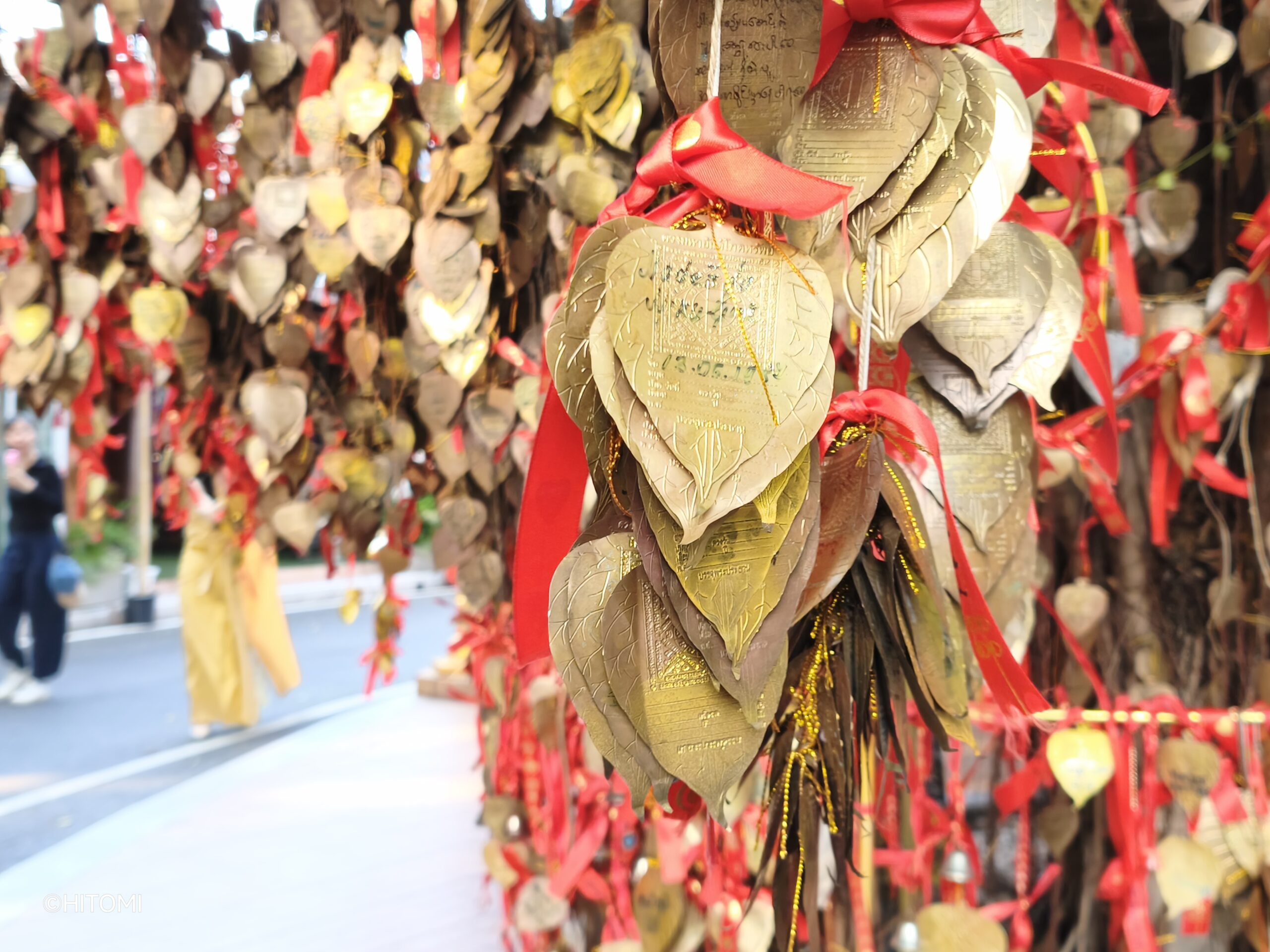 境内には本堂の他に2つの御堂がありますが、多くの参拝者は仏塔を目指します。金色の菩提樹の葉に名前を書いて奉納することができ、筆者も実際に奉納してきました。