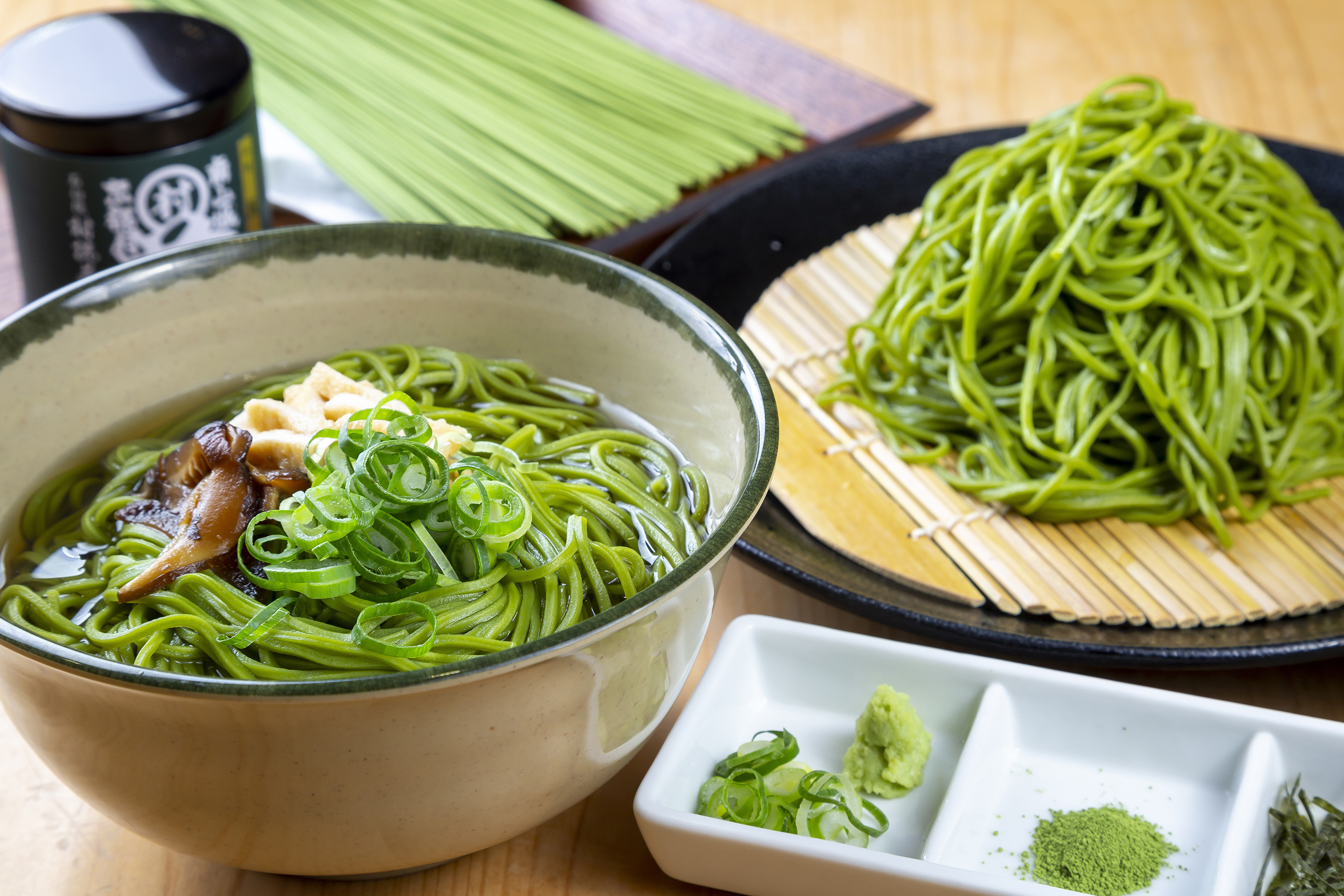 お土産もいいけどここで味わって帰りたいという方に村風土食堂「つちのうぶ」がおすすめ。おすすめメニューは抹茶おくみどりを練り込んだそばに茶飯がつく「村抹茶そば定食」(1000円)。