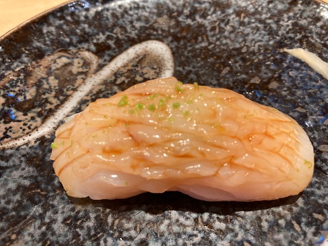 おまかせコースのネタは季節や仕入れ状況により変わりますが、筆者らが頂いたのは以下のとおり。カッコ内は風味付けやトッピングされたものです。