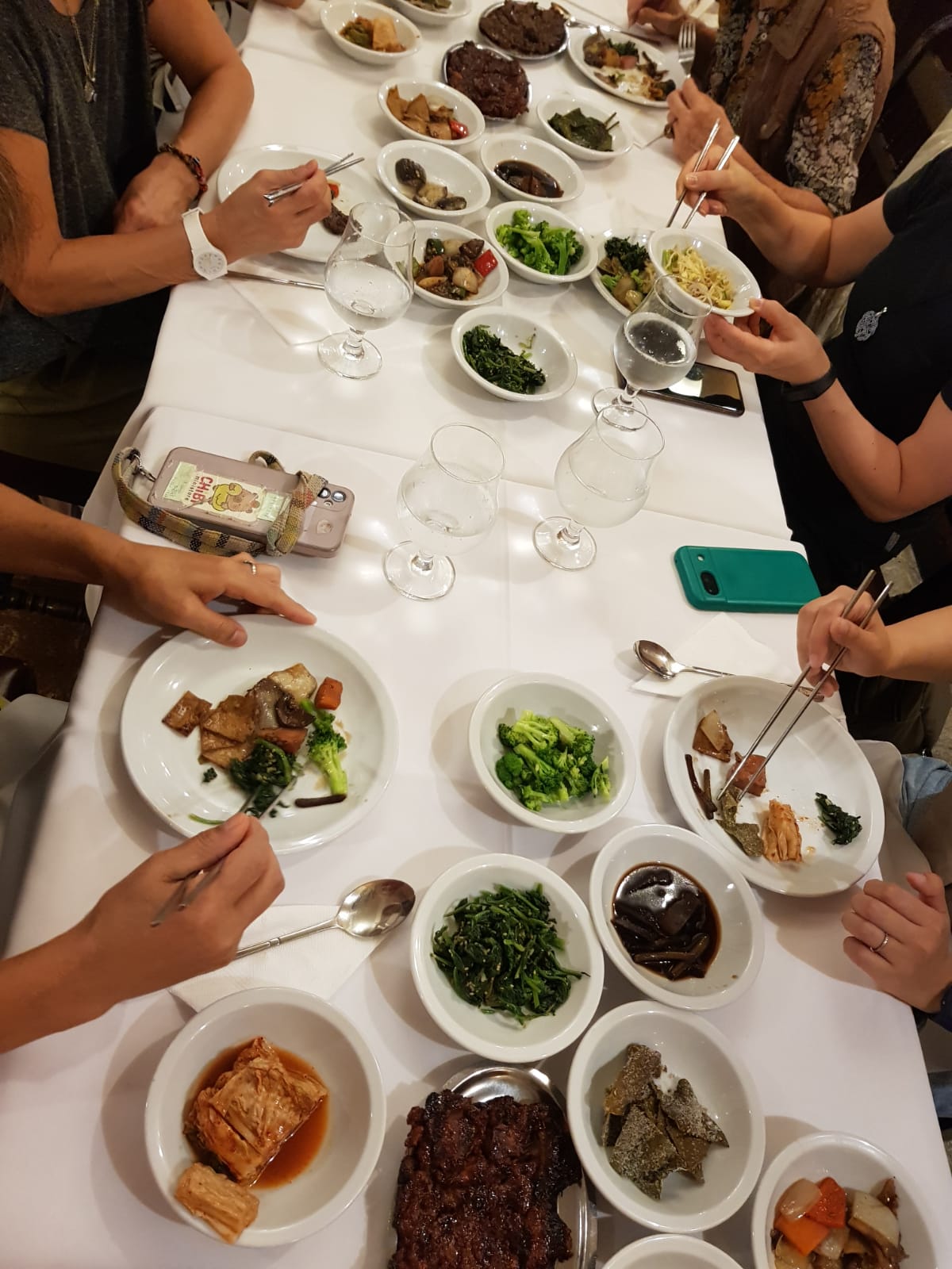 韓国料理の魅力といえば何といっても、テーブル一杯に並ぶさまざまな副菜(バンチャン)です。料理が出てくる前に前菜的に少しずついろいろな味を楽しみながら食事が進んでいくこのスタイルは韓国料理ならであり、日本人の口にあう総菜が多いし、野菜もたっぷりとれます。