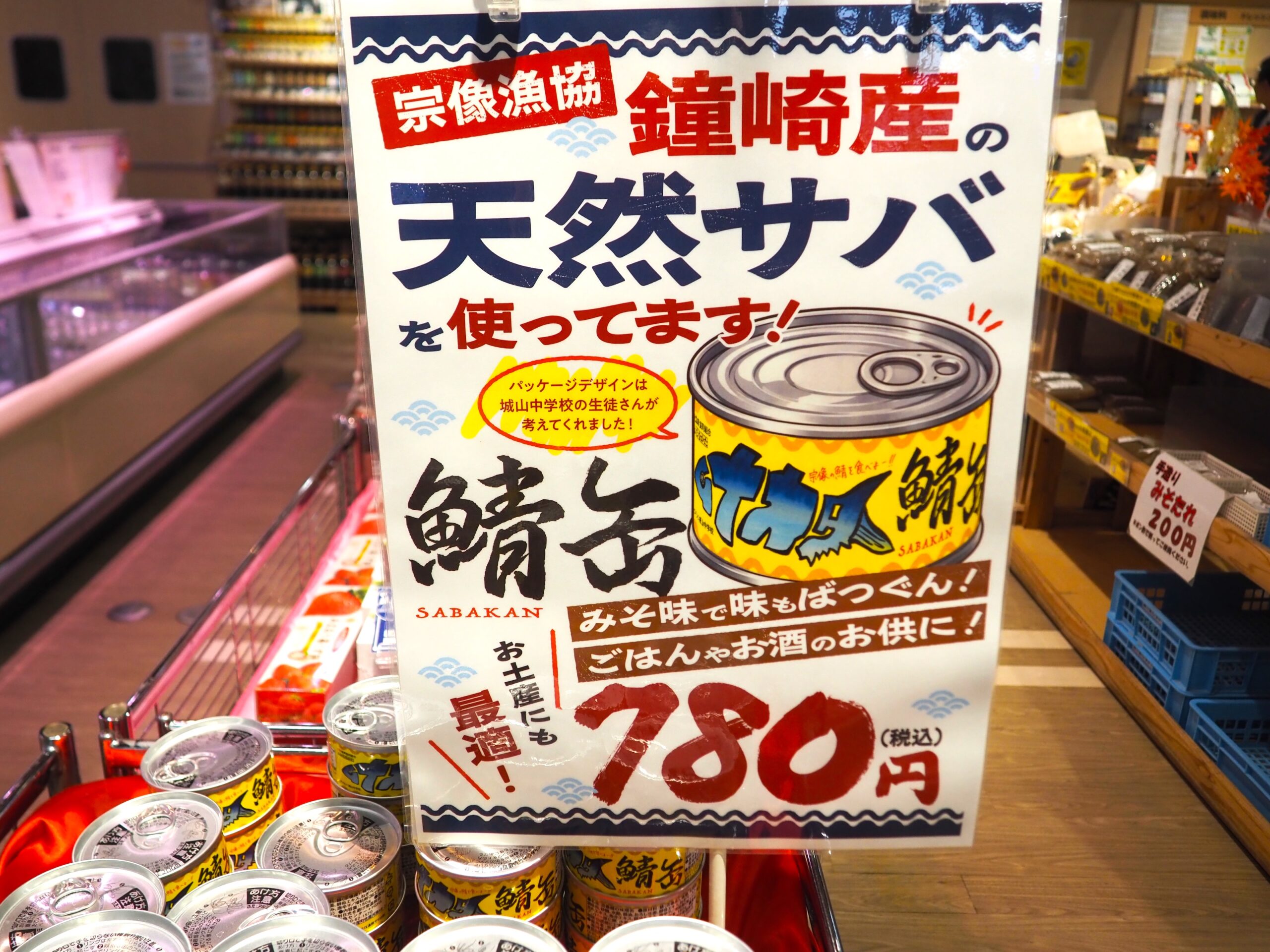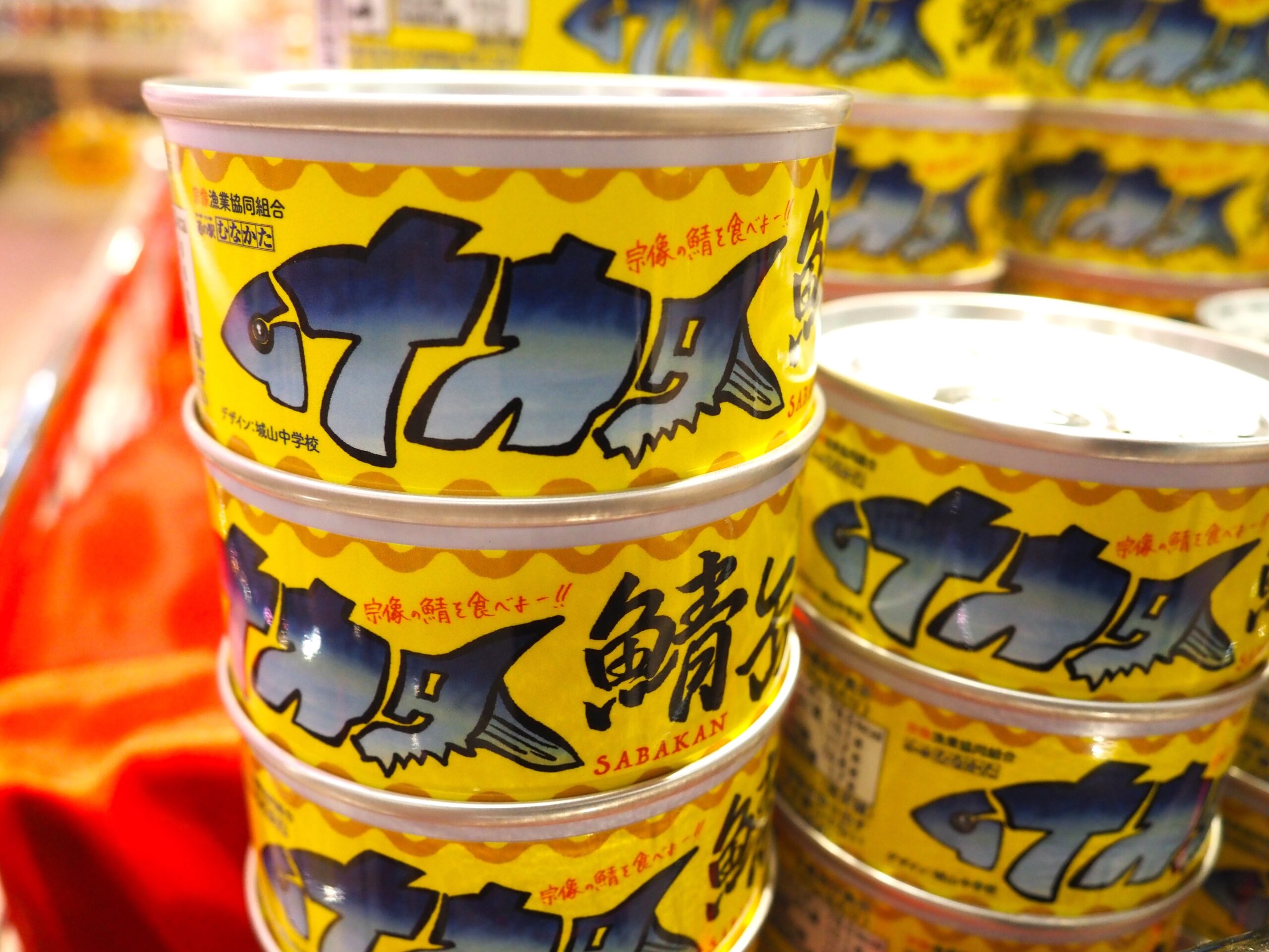 意外と缶詰めの商品が少ないのですが、缶のデザインのユニークさに思わず立ち止まりました。よく見ると魚を「ムナカタ」で表現していてびっくりしました。