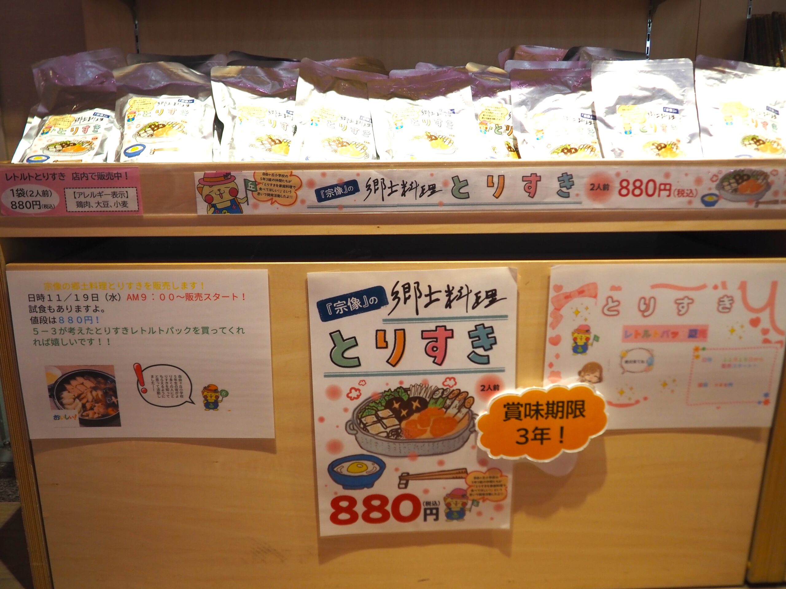 そして、この郷土料理を身近に感じてもらおうと、宗像市立自由ヶ丘小学校5年生(2025年度当時)が、地域の食文化の継承や地域活性化をテーマに、学習の一環として開発された郷土料理「とりすき」のレトルトパックが販売されました。