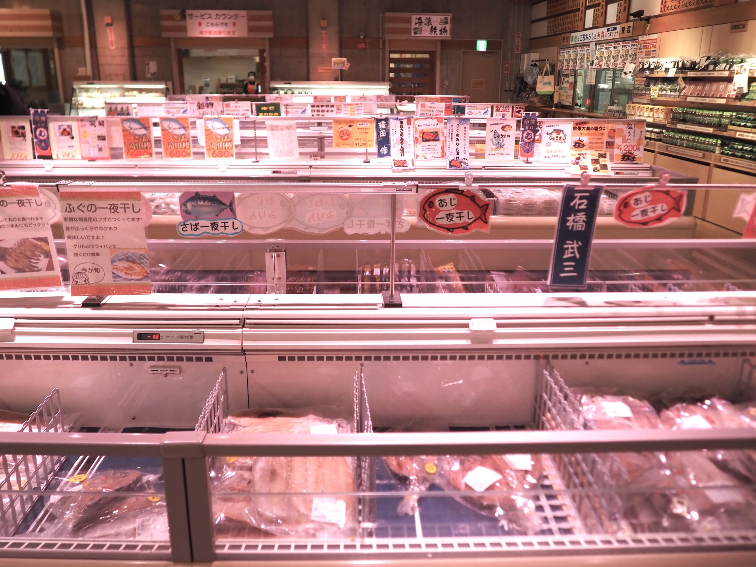 そこでおすすめなのが、おいしいものが集まる「道の駅むなかた」です。新鮮な魚などの海の幸、野菜、お肉、お菓子や民芸品などがたくさんそろっています。