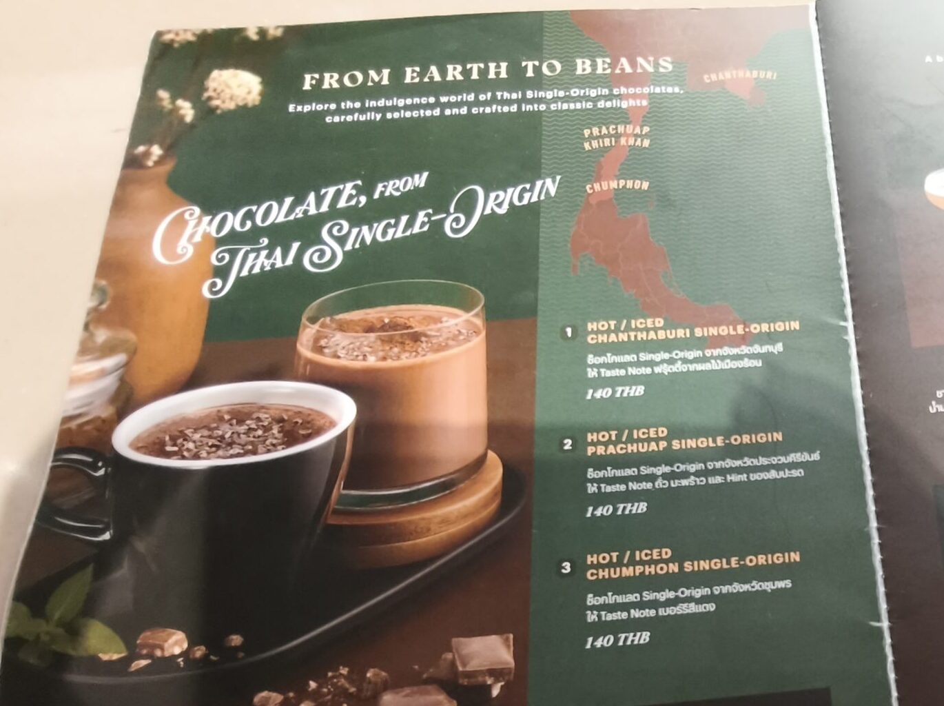 2階ではコーヒーではなく、お茶・抹茶・チョコレートのドリンクを提供。タイ産カカオを使用し、産地ごとに味わいの違いを楽しめるチョコレートドリンクが目を惹きました。