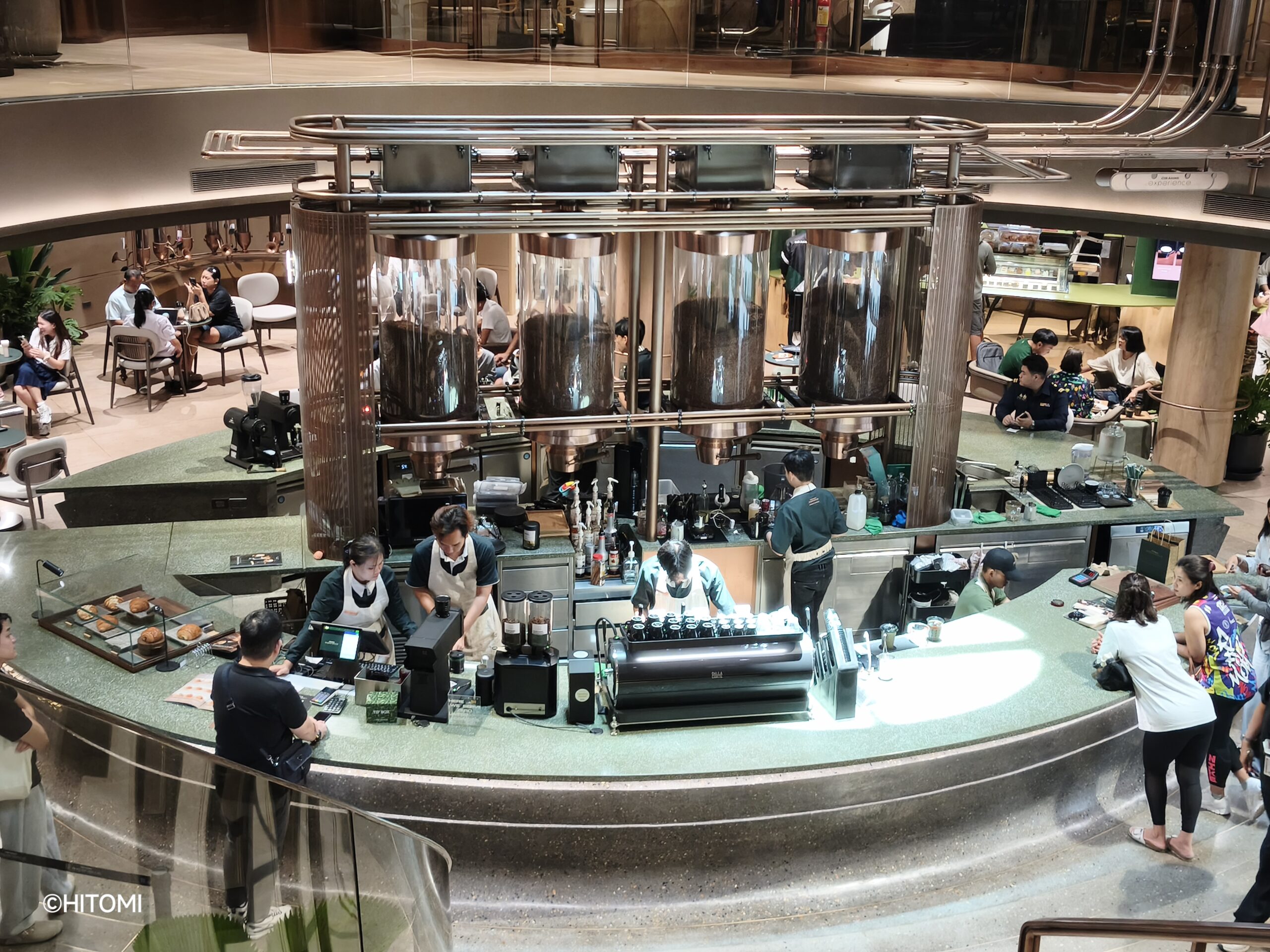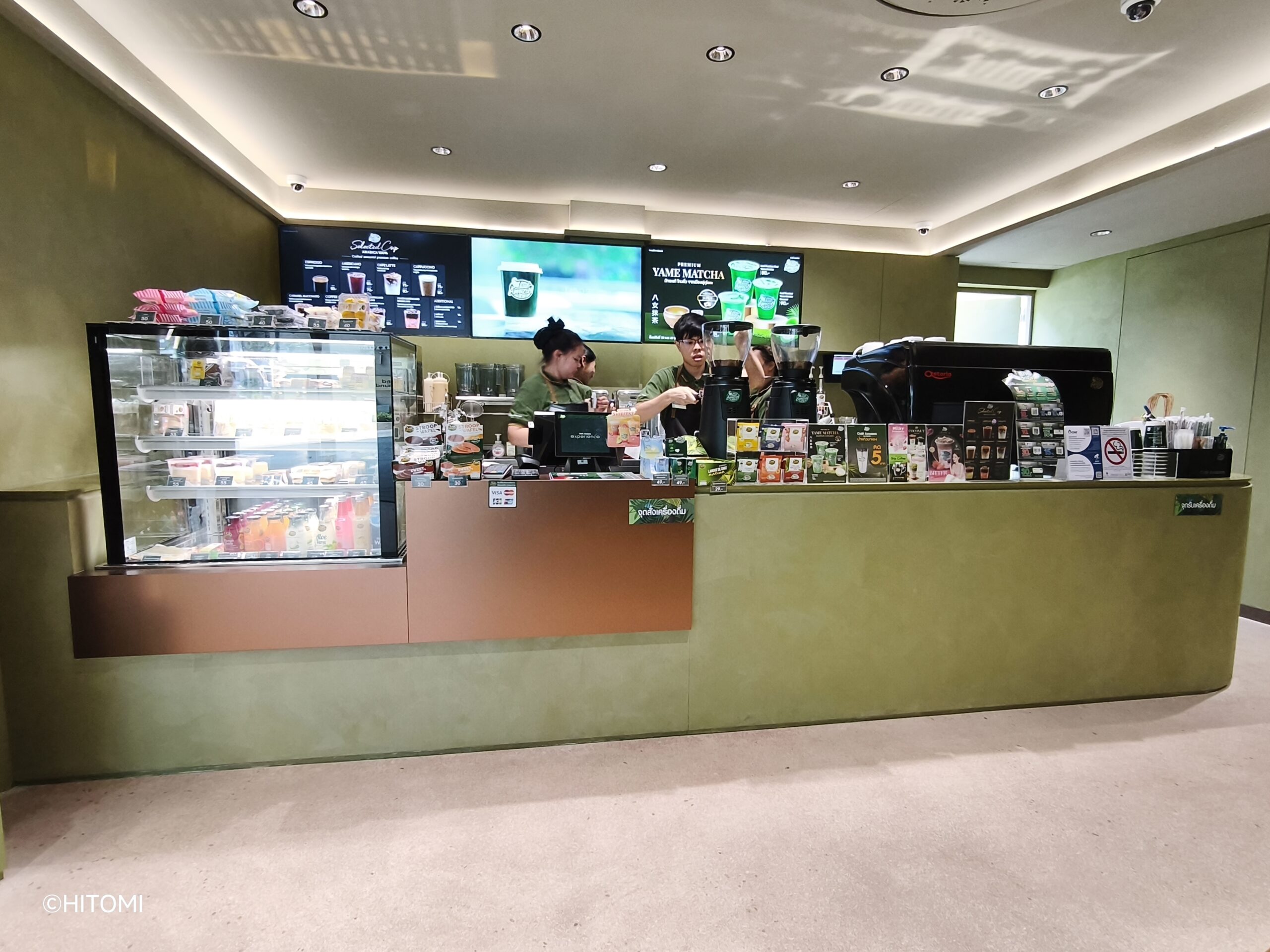 さて、気になるコーヒーの味は――。筆者は普段通りにホットラテを注文しました。価格は110バーツで、通常店舗の約2倍です。特別感は感じられませんでしたが、普通においしくいただきました。周囲ではコーヒーと抹茶ドリンクの割合が半々でした。