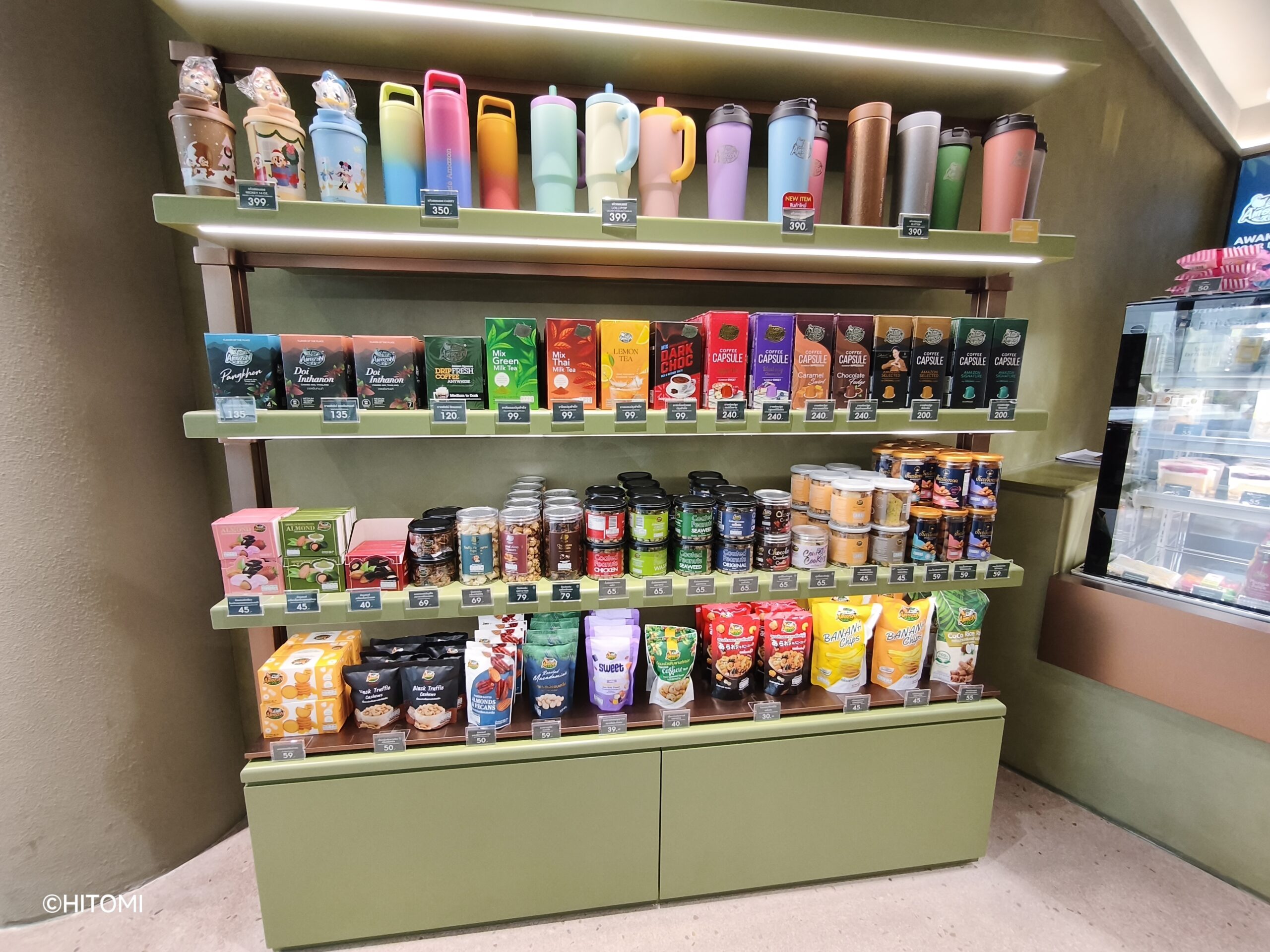 G階の「Found & Found」は、タイ石油公社グループ企業が運営するヘルス&ビューティのセレクトショップ。その隣にはテイクアウト客向けのカフェ・アマゾンがあります。