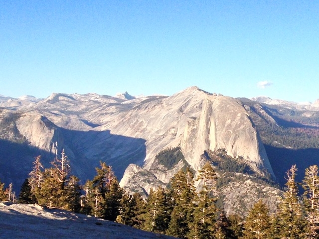 ガイドブックで見るハーフドームと違う角度で、しかも見下ろす感じだけど、向こうの標高が2693mで高いんです。テッペンから見ると自分がお山の大将になった気分です。乾いた風の音、かすかに聞こえるシャッターの音しか聞こえないし、携帯電話(スマホ)のアンテナも圏外となってしまう。