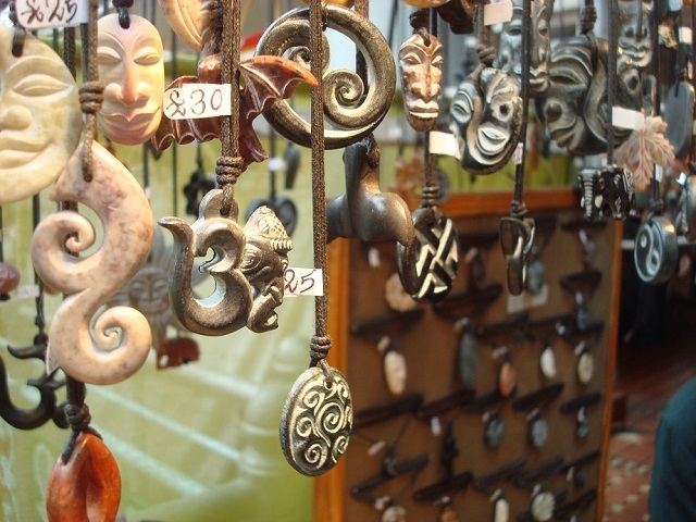 私と娘が先日行った時は、ちょっと変わったアクセサリー探しが目的でした。そこで娘が、この石を手掘りして作ったペンダントに一目ぼれ!製作しながら商いをしているアーティストさんと、しばらくお喋りしてから小さくて可愛らしいヤモリのペンダントを買っていましたよ♪