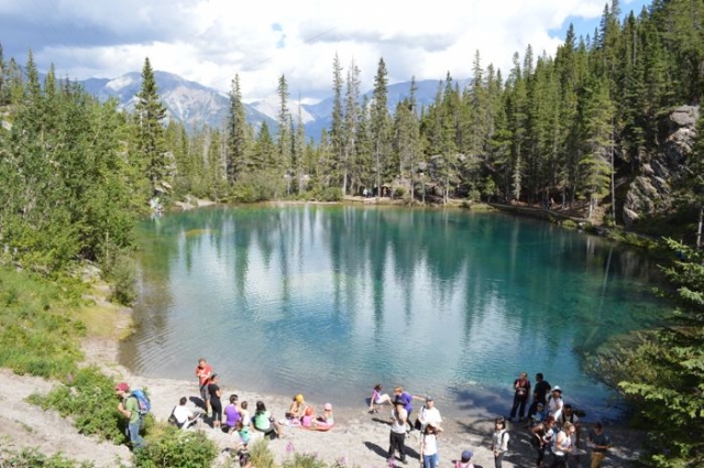バンフの旅行業界用語で「B10」(ビーテンと読む)という言葉があります。意味は、バンフを起点に10時間で戻ってくるカナディアンロッキーツアーの略。日本から来る団体ツアーはほとんどがこのB10ツアーであるため、このグラッシーレイクに行くことはありません。なぜならこのグラッシーレイクはバンフ国立公園外のキャンモアという街にあるためです。