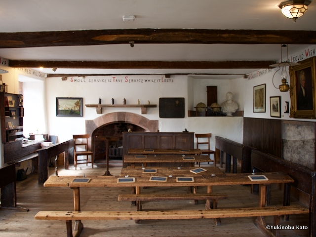 ちなみにグラマー・スクールとは当時のエリート養成校。ラテン語、ギリシャ語、科学などを教えていました。時間割は夏の場合、朝6時から11時、昼の休憩を挟んで13時から17時まで、冬は朝7時から11時、そして3時半から16時だったそうです。夏は1日9時間、冬は7時間半も授業があります! また学生(もちろん未成年)は、喫煙や飲酒、闘鶏などを嗜んだといいます。今回はピーター・ラビットを巡るコースですが、ワーズワースも通ったこのグラマースクールに立ち寄っても、興味深いと思います。