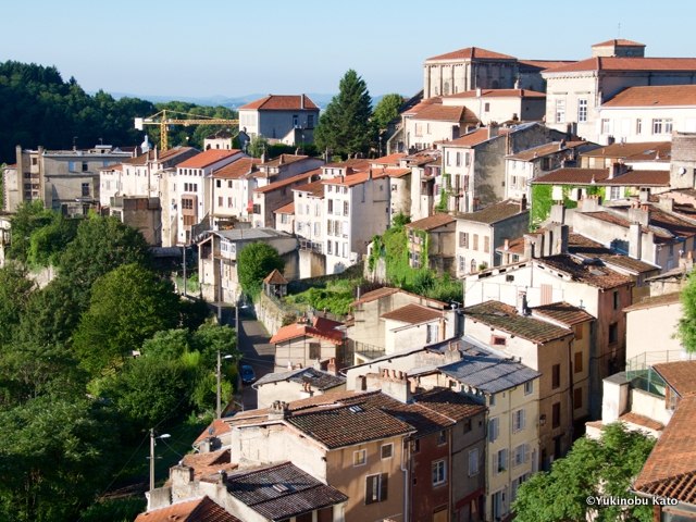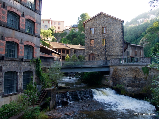 ティエールは山間を流れる川の水力と、周囲の豊富な木材資源を燃料に、刃物産業が発達しました。今は機械化が進んだ同生産ですが、かつての工房は川に沿うように立ち並んでいます。町全体は高低差があるため立体的で、高台から全体を望むと、美しい景色を楽しめます。旧市街には木組みの中世からの町並みも残っています。