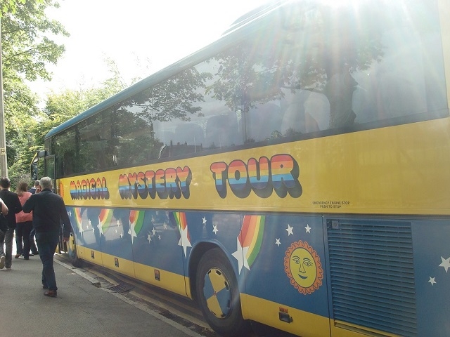 その名も、「マジカル・ミステリー・ツアー」!集合場所であるマージー川の埠頭で、遠くからでもハッキリ分かる車体が見えた時は思わず微笑んでしまいました。