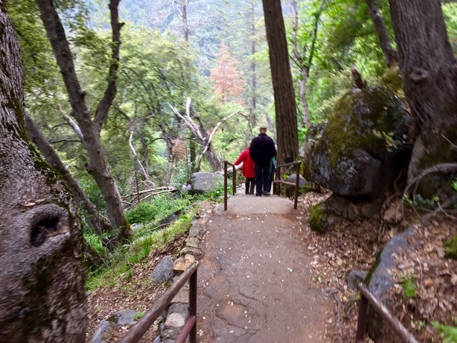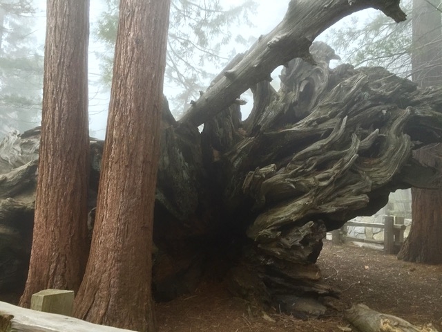 山の麓は晴れていたのですが、ここは標高約2000m、霧が発生していて靄の中の散策、とにかく大きい木ばかり驚きです。だって大きいアメリカ人がちっちゃく見えるんですから。