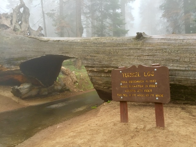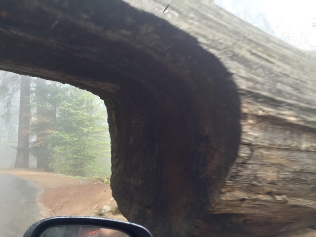 1937年に倒れたジャイアントセコイアをくりぬいてトンネルにしてんだそうだ。通ってはいけないと書いていないので車で通過してみる事にして、ゆっくり通過。