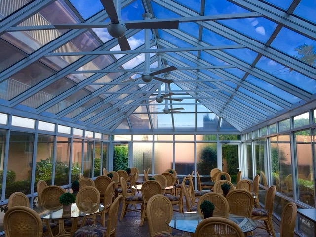 プールサイドにはパーティーもできるようになっている「ガーデンコンサバトリー(Garden Conservatory)」というガラスでできたお部屋があって、ブレックファストは、7時から10時までオープン。トースト、デニッシュ、シリアル、果物などが用意されていました。