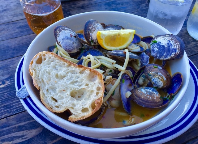 風もなく天気が良かった事もあり中よりパティオで食事をしている人が多く、ここで遅いランチタイムとなりました。