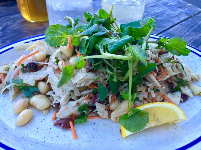 ツナサラダは、マヨネーズを絡めた(多分皆さんが想像するサラダ)をイメージしていたのですが、酸味の効いたビネグレットソースでこれがお豆さんとよく合いさっぱりしています。野菜の鮮度も抜群で、さすがマリーンカウンティー食材の宝庫を感じさせます。