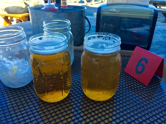 メイソンジャーはもともと保存用のグラスですが、数年前から飲み物用グラスとしていろんなレストランで使われています。口当たりに賛否両論ありますが、この場合はコンセプトにもマッチしてるしOKとしましょう。