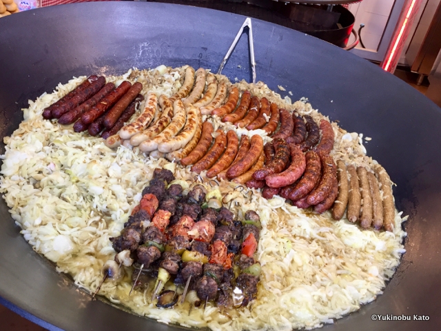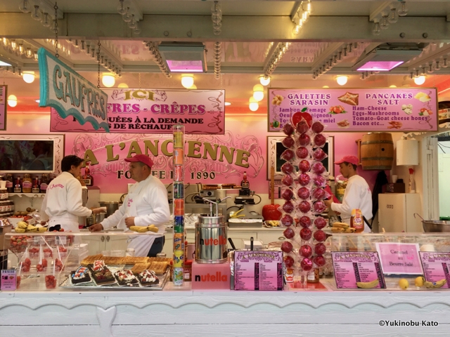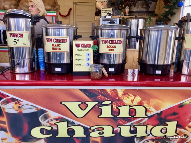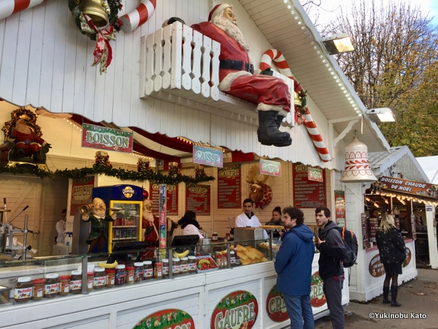 クリスマスマーケットで売られる定番といえばヴァン・ショー(ホット・ワイン)、マロン・ショー(焼き栗)の2つ。これらを見ると「今年も冬が来たな」と思わせてくれる品々です。その他にもバーバパパ(綿菓子)、チュロス、クレープなど、様々な食べ物が並びます。