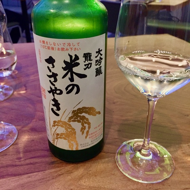 すっかりレストランの手中に入ってしまった我ら、和かな表情がとても印象的なマネージャーさんが、最後のペアリングの獺祭濁り酒をフルートで注いでくれました。