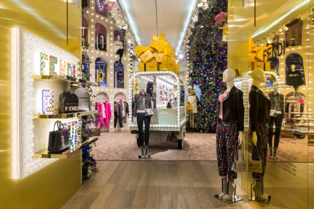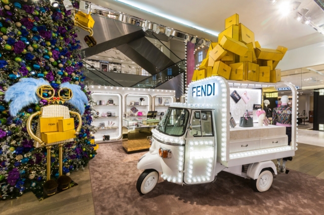 ショーウインドーを見学したら館内に入ってみましょう。今年のプランタンのクリスマスで注目すべきブランドはフェンディ。館内中央にある特設スペース「フェンディのアトリウム」は、プランタンでしか買えないフェンディの商品が並びます。