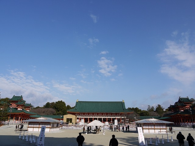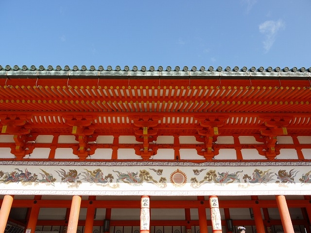 平安京の朝堂院を模した朱塗りの社殿が美しく雅な雰囲気が流れています。
