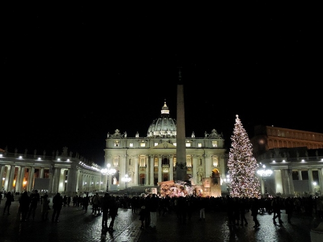 ローマで最も重要なクリスマスツリーは、バチカン市国のサン・ピエトロ大聖堂前に設置されたローマ法王のクリスマスツリーです。