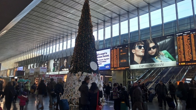 また、駅やショッピングセンターなどのクリスマスツリーも素敵です。例えば、ローマの玄関口ともいうべきターミナル駅、ローマ中央駅・テルミニ駅にも毎年大きなクリスマスツリーが立てられます。