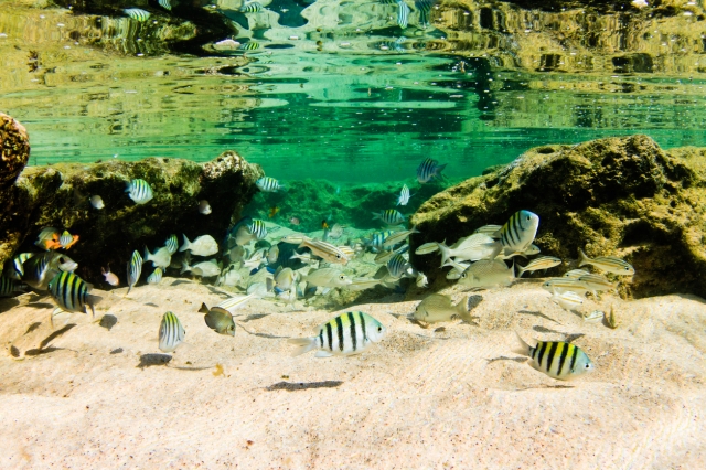 海水浴を楽しむならフェルナンド・デ・ノローニャ島にあるサンショ湾ビーチがおすすめです。ベストビーチを決める世界各国のコンテストで常にトップにランキングする珠玉のビーチ。50m先まで見渡せる海水の透明度に、訪れた観光客は誰もが驚くはずです。