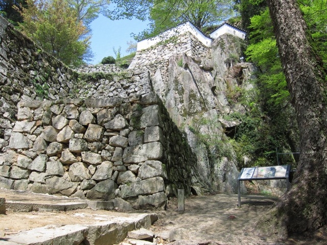ふいご峠(8合目)からは、20分のハイキングコースがあります。天然の岩盤を利用して築かれた大手門櫓跡からの石垣の景観は圧巻です。新緑や紅葉など折々の自然の魅力を感じながら登城できます。この景観は、NHK大河ドラマ『真田丸』のオープニングで使用され話題になりました。