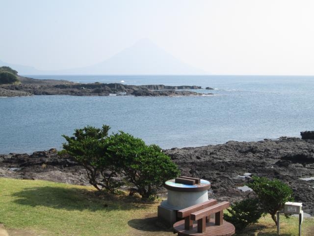 また、最近では拝殿の天井にある龍の絵を携帯などの待ち受けするといいことがある、とも言われていて、訪れた人達はベンチに横になりながら必死に撮影していました。神社の裏には開聞岳を望む絶景スポットもあり、釜の蓋の形をしたベンチに座って、ゆったりとした時間を過ごすこともできます。