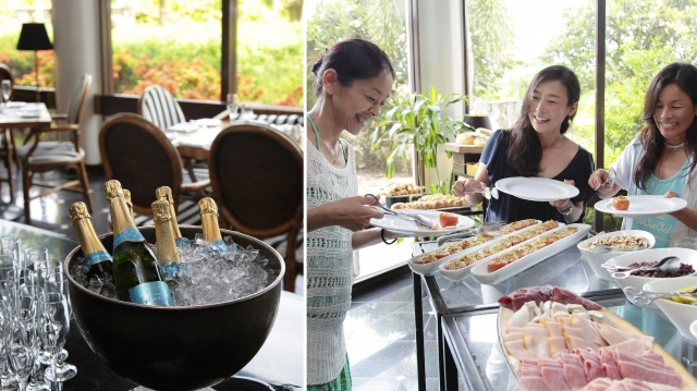 オンザビーチのラグジュアリーホテル「ハイアット リージェンシー サイパン」内にある「ジョバニス」は、プチ贅沢に楽しみたい日におすすめのイタリアン。狙い目は日曜日10:30~14:00のサンデーブランチビュッフェ。パスタやローカル料理、フレッシュなシーフードに和食など、多彩なラインアップ!ビュッフェ料金50ドルに、スパークリングワインが飲み放題が含まれるサービスがうれしい。予約時にガーデンビューの席をリクエストするのがおすすめ。
