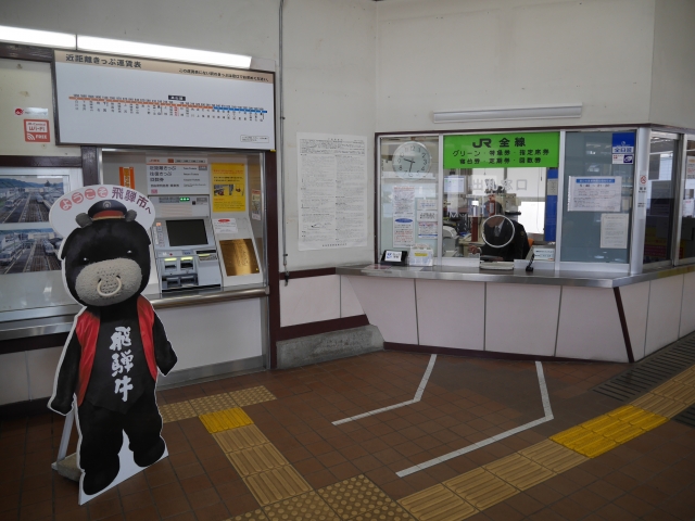 映画と同じ、2番線に特急「ワイドビューひだ」号が到着するシーンをカメラに収めることはできませんが(2番線に発着する特急列車がない)、写真撮影がしやすいように跨線橋の窓枠の間隔を大きくしたり、背が低くても大丈夫なように「お立ち台」も設置されています。さらに改札口付近やタクシー乗り場など、ファンならうれしくなる「舞台」があります。