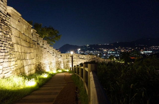 次に紹介するのは、韓流ドラマのロケ地としてもよく使用されるほど、城郭のライティングが美しい駱山公園と、その途中で鑑賞できる梨花洞壁画村の壁画です。