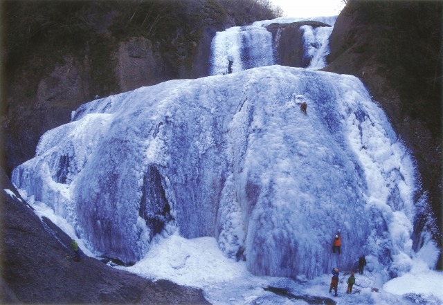 冬になると凍結することもあり、完全凍結した際には雄大な滝が静けさに包まれ神秘的な美しさを見せてくれます。