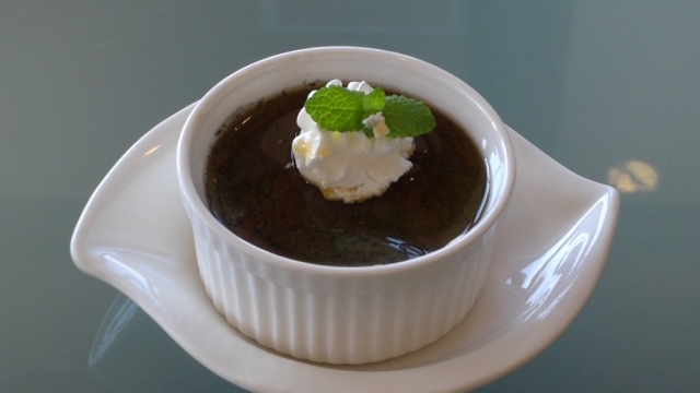 デザートにも黒酢。黒ごまプリンはシロップに黒酢が使われているとか。プリンの濃厚さに黒酢のさっぱりした感じがよく合います。