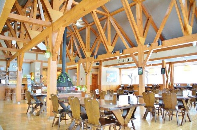 カフェレストラン・モントヴィレッジは、道路をはさんだ場所にある湖畔のレストランです。早池峰の自然が育んだ当地の食材を使用したこだわりの料理とともに、窓外に早池峰の自然を眺めながら食事を楽しむことができます。店内の販売コーナーでは、県内産の特産品の販売を行っています。