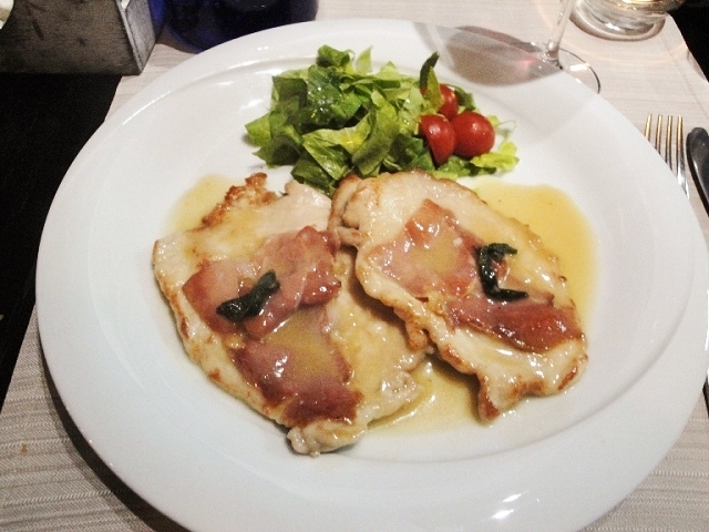 「カンティーナ26」でもう一品、おすすめしたいローマ料理は、サルティンボッカ・アッラ・ロマーナ(Saltimbocca alla Romana)です。イタリア語で「口に飛び込む」という意味を持ち、薄い仔牛肉に生ハムとハーブの一種であるセージの葉を乗せて、バターや白ワインでていねいに仕上げられた一品です。