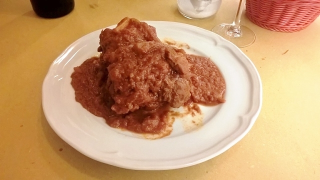 その一例として、ローマ料理の発祥とされるこの下町エリアでは、コーダ・アッラ・ヴァッチナーラ(Coda alla Vaccinara)が生まれました。昔、精肉した後の余った内臓や尾が日当の一部として労働者に支給されていました。その牛の尾の肉にトマト、玉葱、セロリ等を使って、じっくりと煮込んだのがコーダ・アッラ・ヴァッチナーラです。