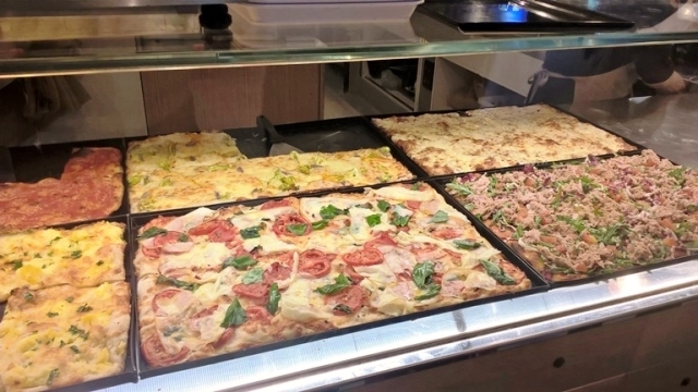 ところで、レストランでもピザを味わうことはできますが、ローマには切り抜きピザ屋がたくさんあります。好みのサイズに切ってもらい、好きな分だけピザを頬張ることができます。その手軽さも着飾らないローマの街ならではの特徴と言えるでしょう。誰もが散歩しながら、ピザをおいしく味わうことができます。