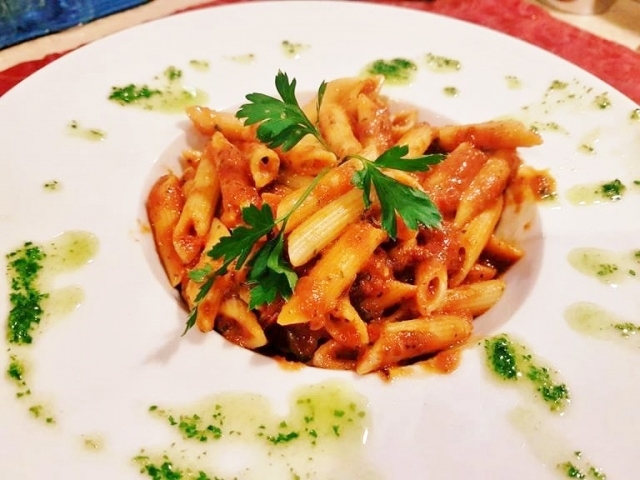 おすすめ料理のひとつであるペンネ・アッラビアータ(Penne all’Arrabbiata)は、唐辛子を利かせたトマトソースにイタリアンパセリを乗せたシンプルな料理です。その辛さから怒っているように見えるため、イタリア語で「怒りんぼ」の意味を持っています。また、塩漬けの豚肉と卵、羊乳のチーズであるペコリーノ・ロマーノを使ったスパゲッティ・アッラ・カルボナーラ(Spaghetti alla carbonara)も絶品の味です。