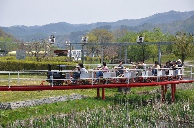 乗り物広場には、サイクル列車やスワンサイクルなどの楽しい乗り物がいっぱい。